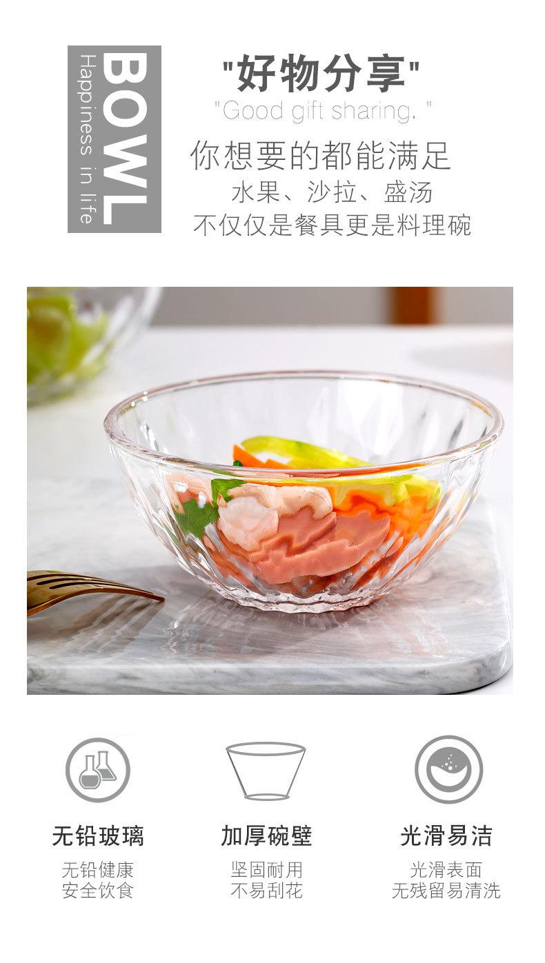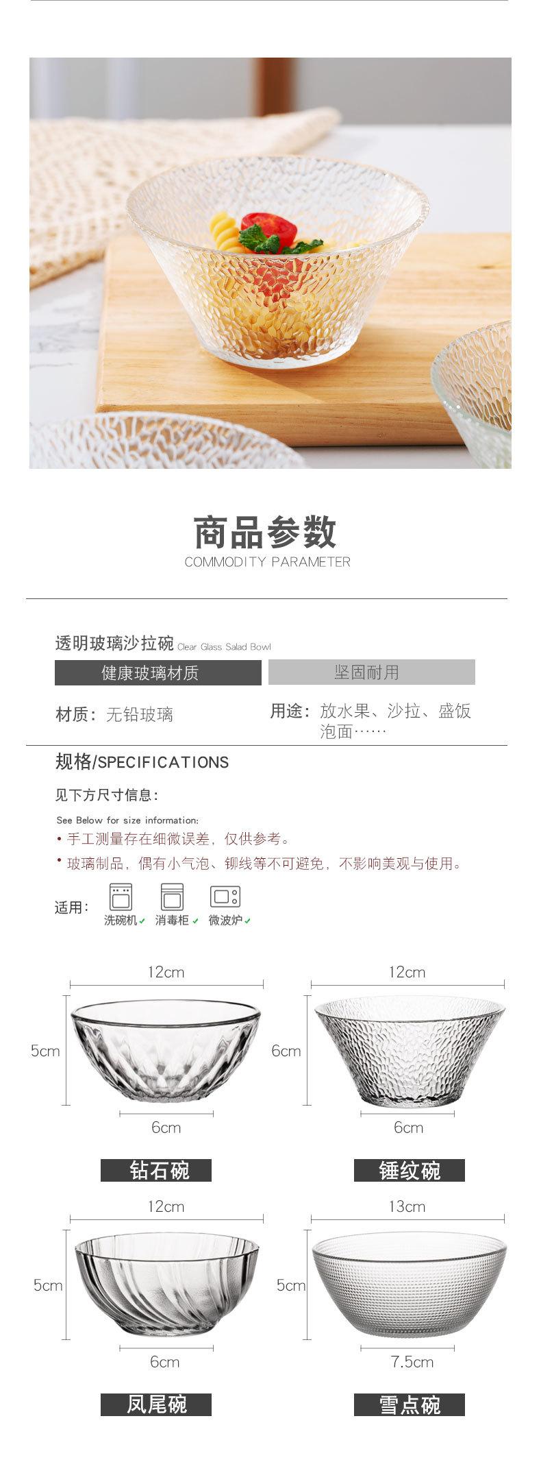 Tazón de Vidrio Transparente Engrosado Tazón de Frutas Tazón de Ensalada Tazón Individual para Fideos Instantáneos Tazón para Sopa Estilo Hogar Tazón Grande para Postre