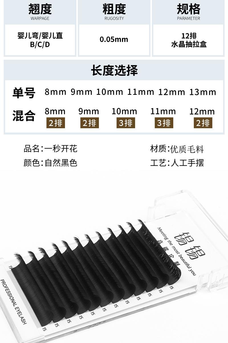 Pestañas de injerto de floración de un segundo 0.05, floración automática magnética, sin raíces dispersas, tienda de pestañas especiales