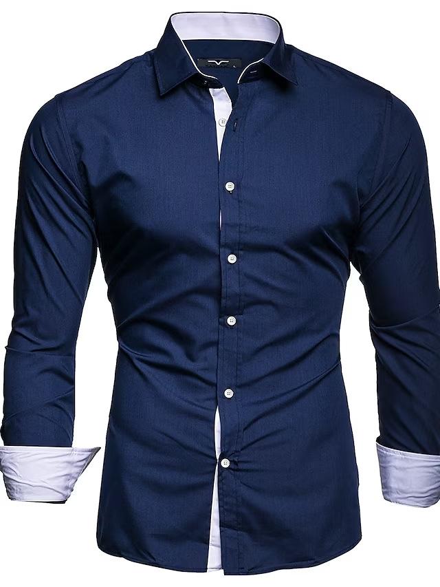 Comercio Exterior Transfronterizo Amazon Camisa Casual de Solapa con Costuras en Color Contrastante para Hombre Juvenil Talla Europea Camisa para Hombre
