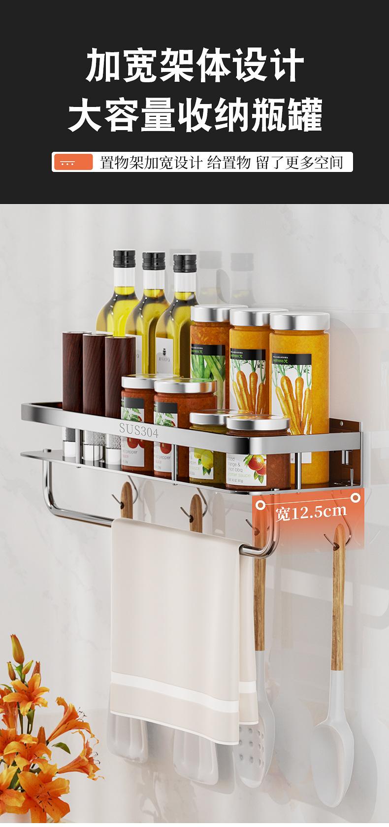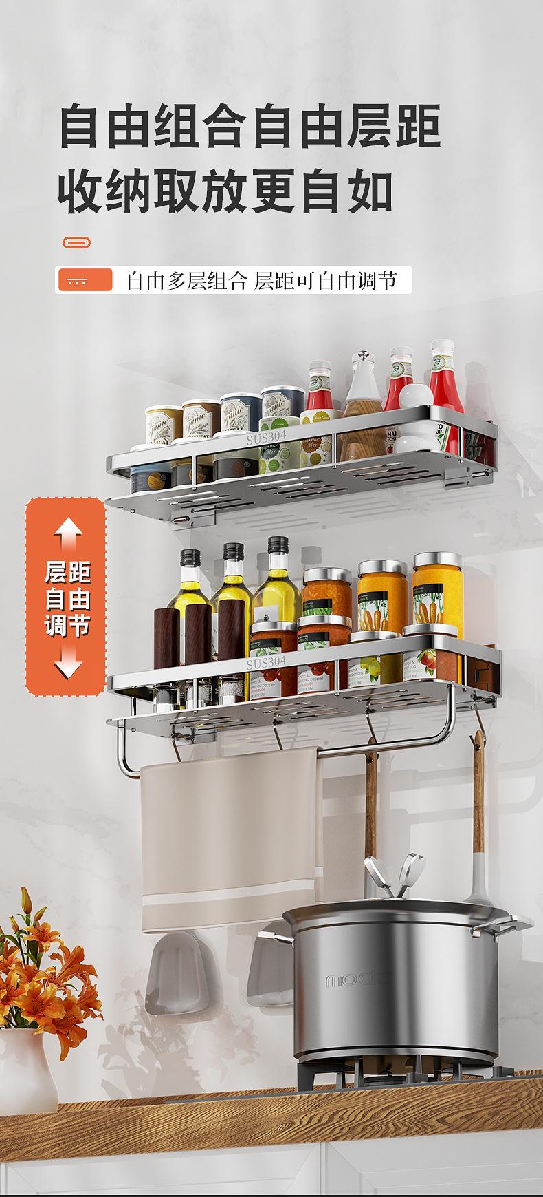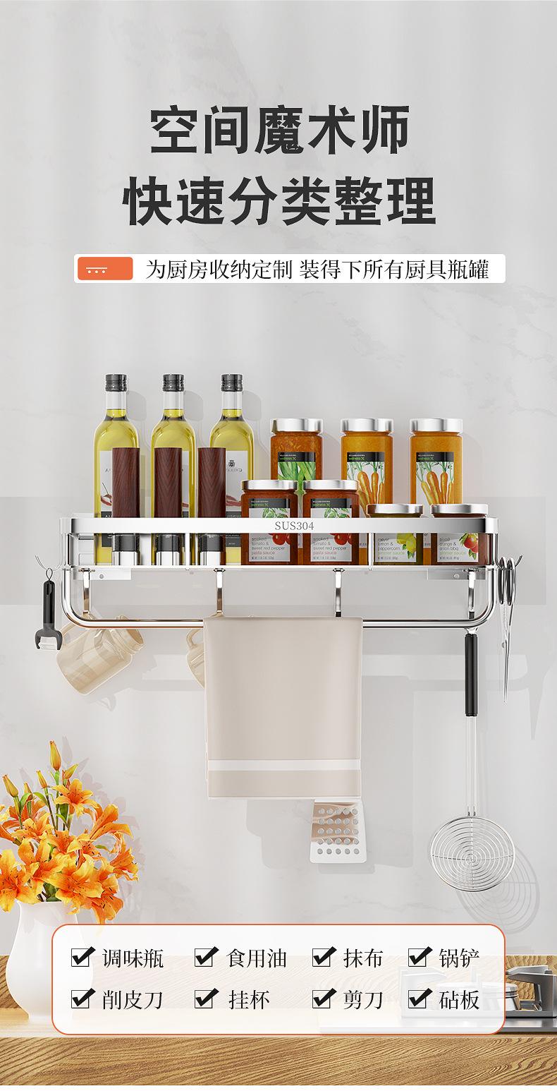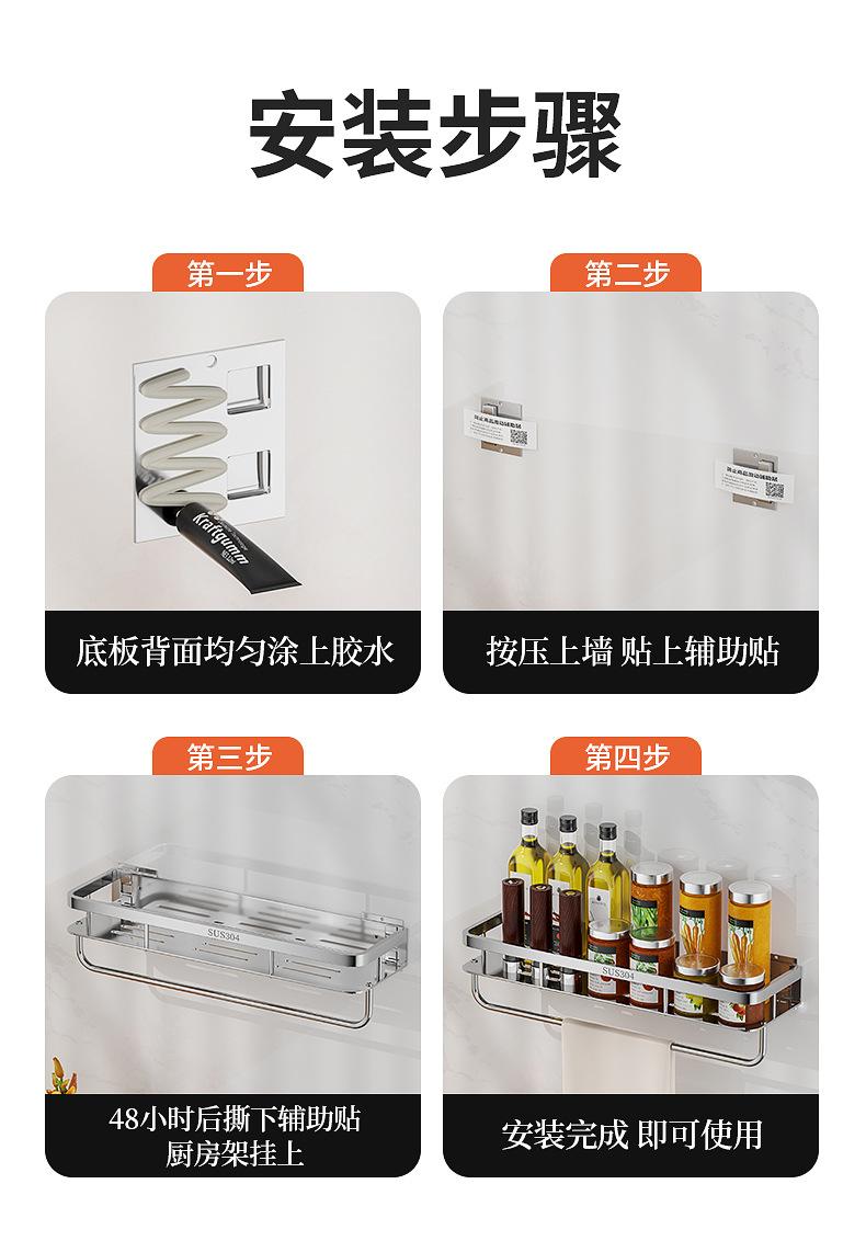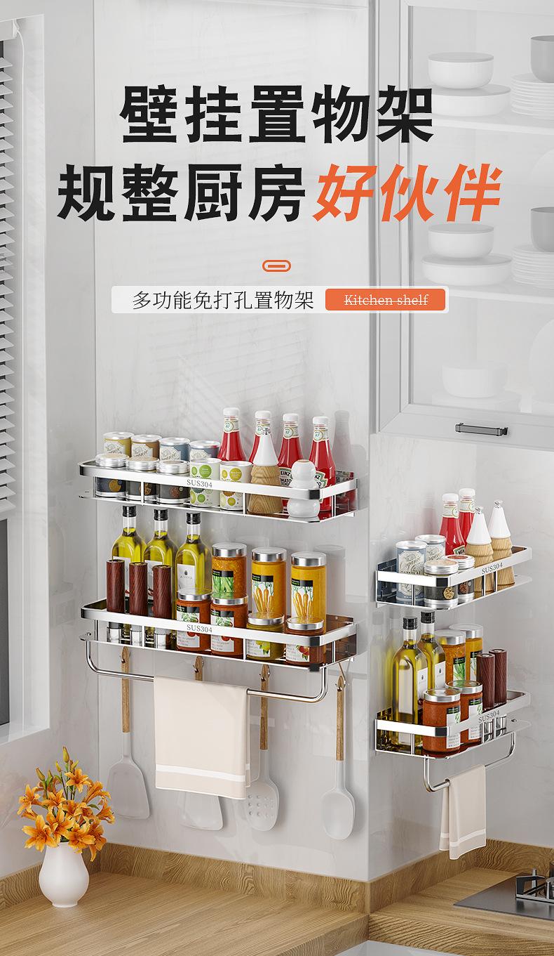 Estante de cocina de acero inoxidable para condimentos, grueso, sin perforaciones, para montaje en pared, para el hogar