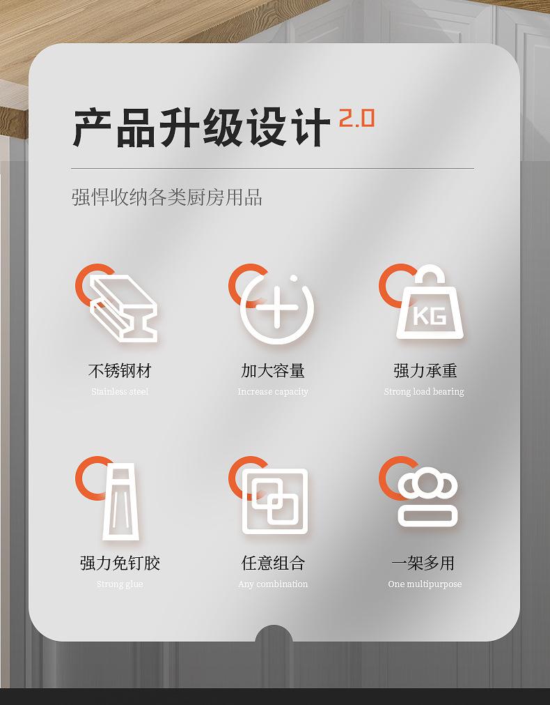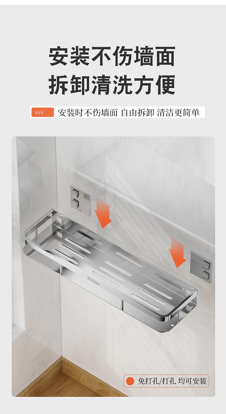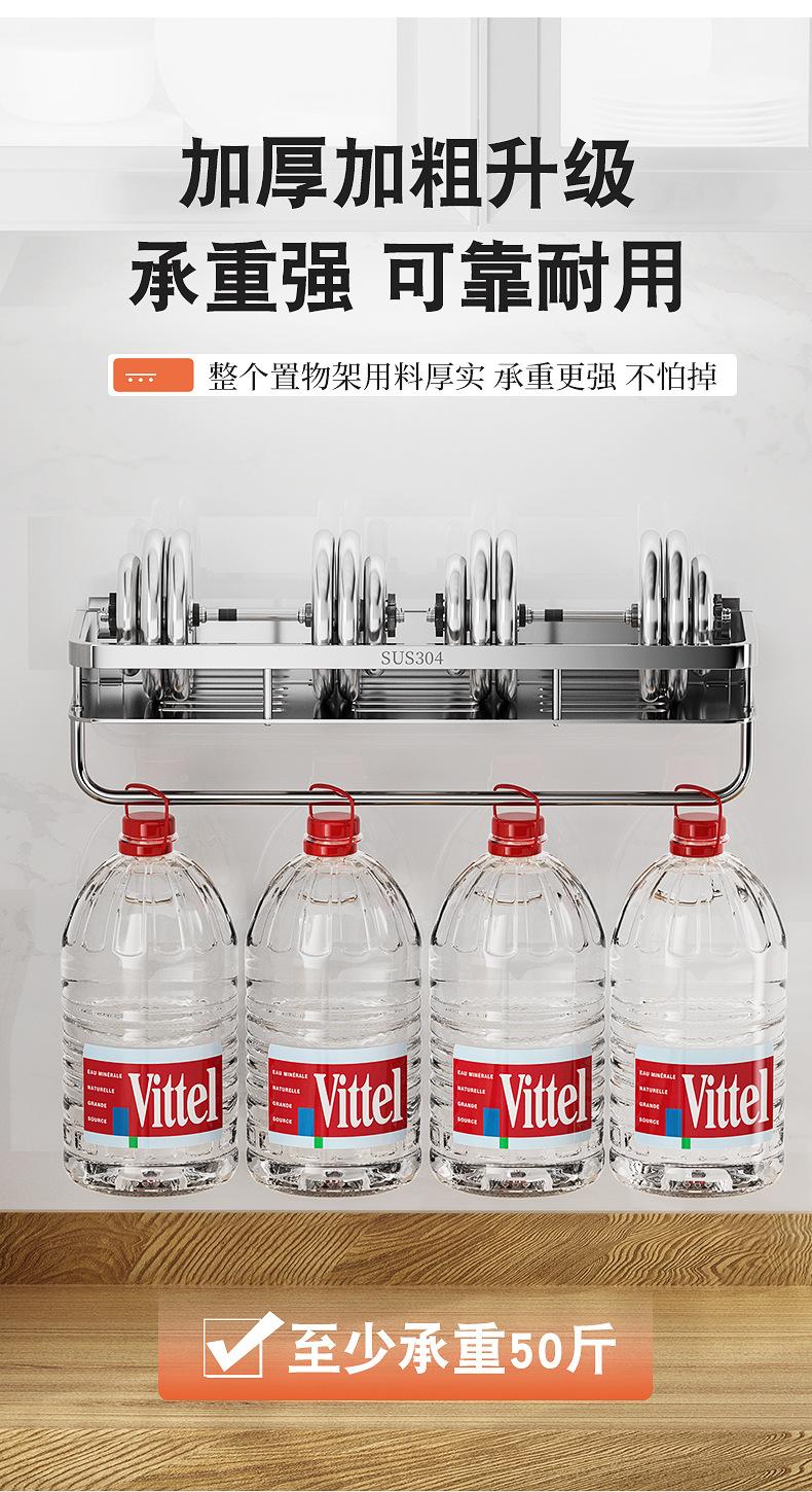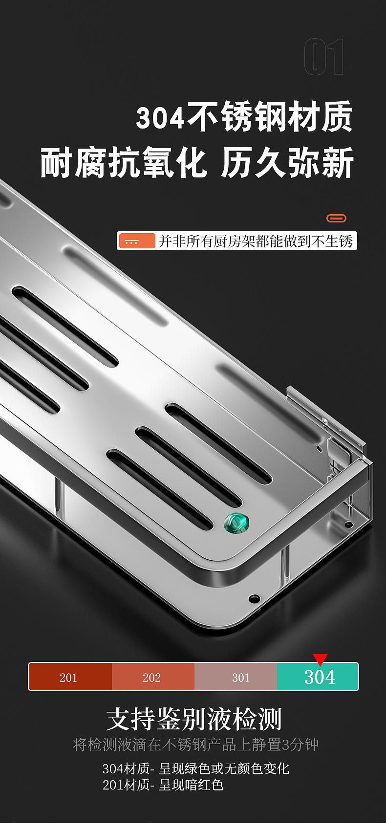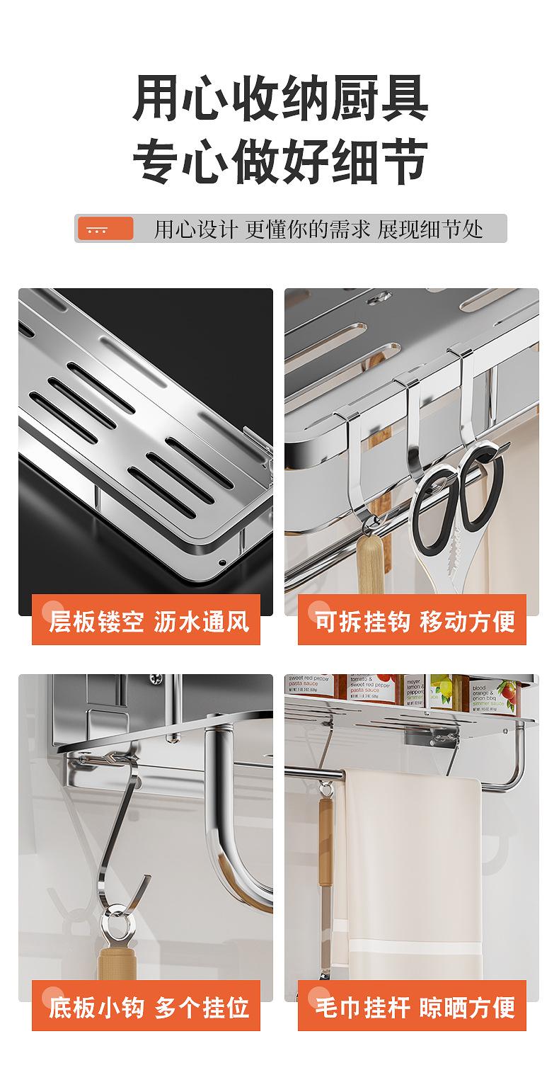 Estante de cocina de acero inoxidable para condimentos, grueso, sin perforaciones, para montaje en pared, para el hogar