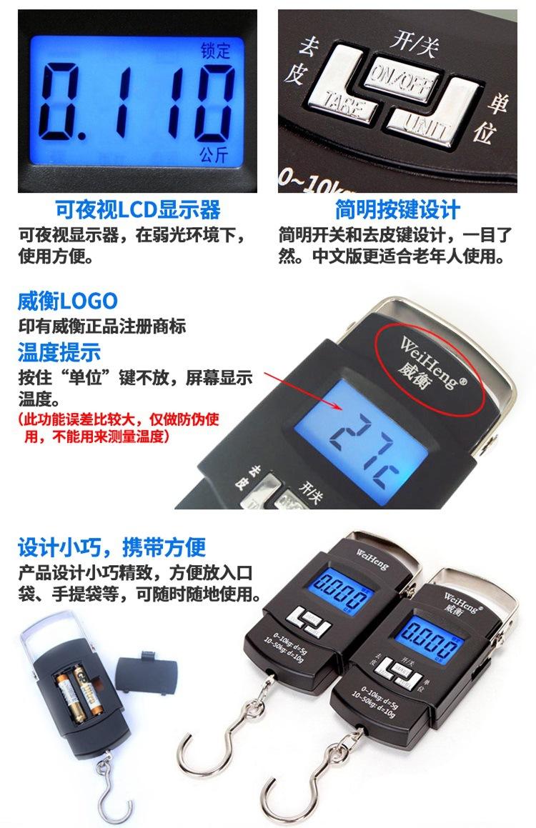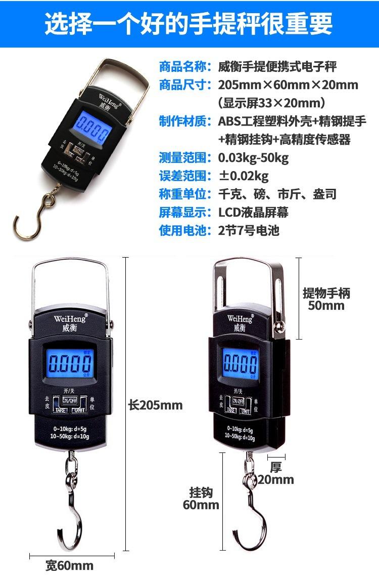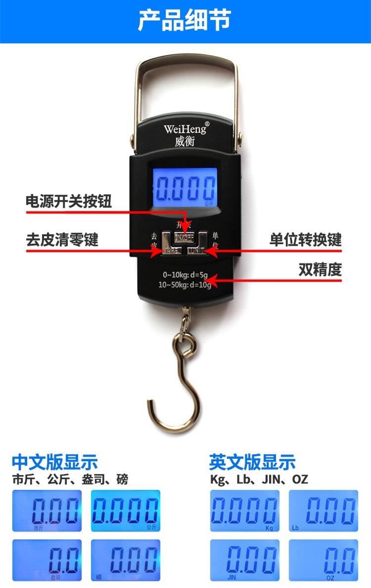 Báscula electrónica Weiheng báscula portátil mini báscula especial para mensajería báscula de resorte Báscula de gancho portátil báscula de cocina 50kg
