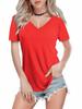 Camiseta informal de manga corta para mujer de Amazon, verano 2024, comercio exterior, estilo europeo y americano, holgada, color liso, con cuello en V.