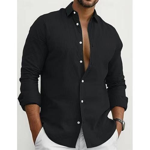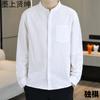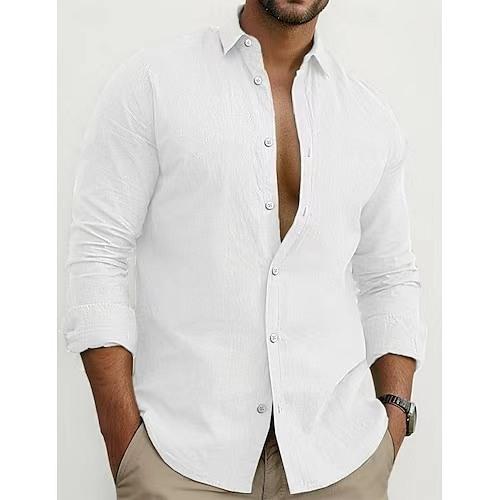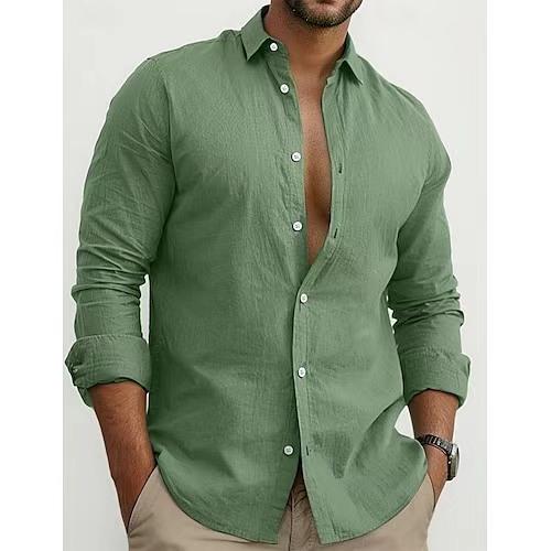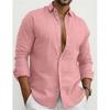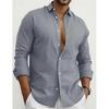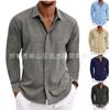 Camisa de manga larga de color liso de lino y algodón de Europa y América de comercio exterior 2024, camisa de otoño para hombre, camisa informal para jóvenes.