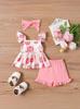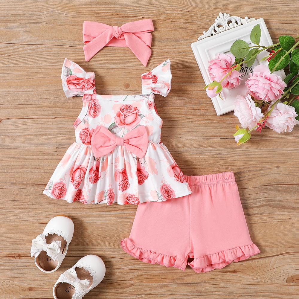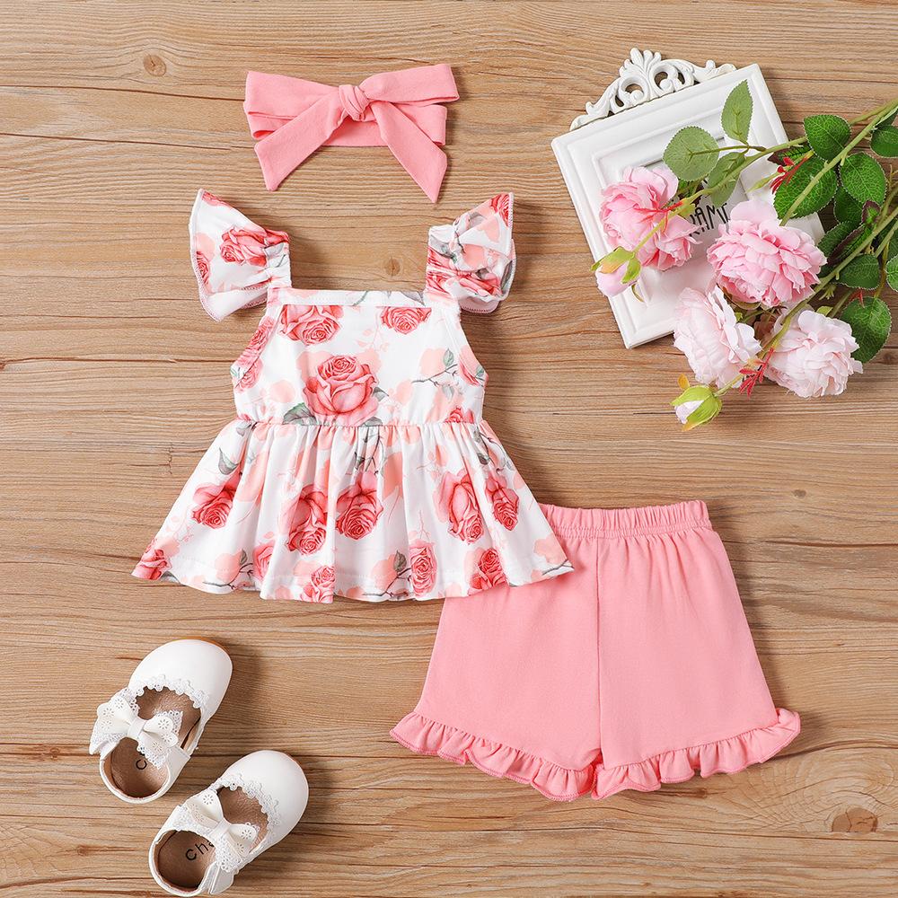 Traje de verano fino para bebé recién nacido, vestido de verano de 0 a 2 años, falda con estampado de tesoro para mujer, pantalones cortos, banda para el pelo, conjunto de tres piezas a la moda
