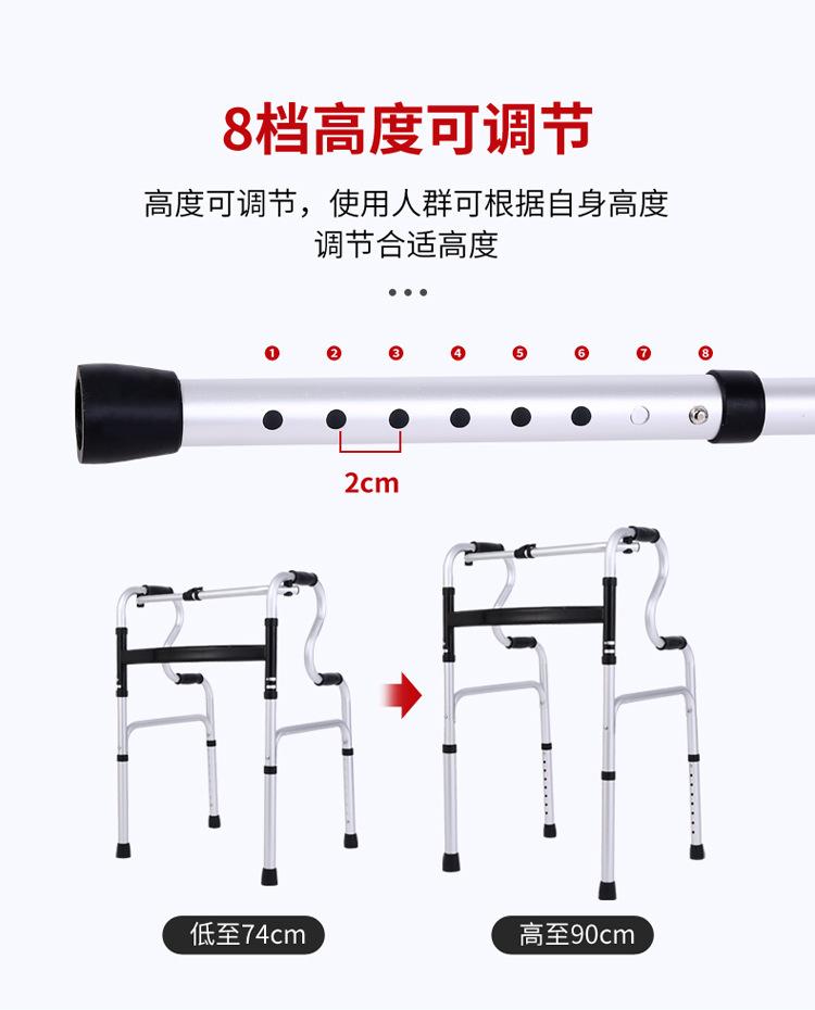 Andador auxiliar de aleación de aluminio de altura ajustable para personas mayores, andador plegable para personas mayores con muletas de cuatro patas.