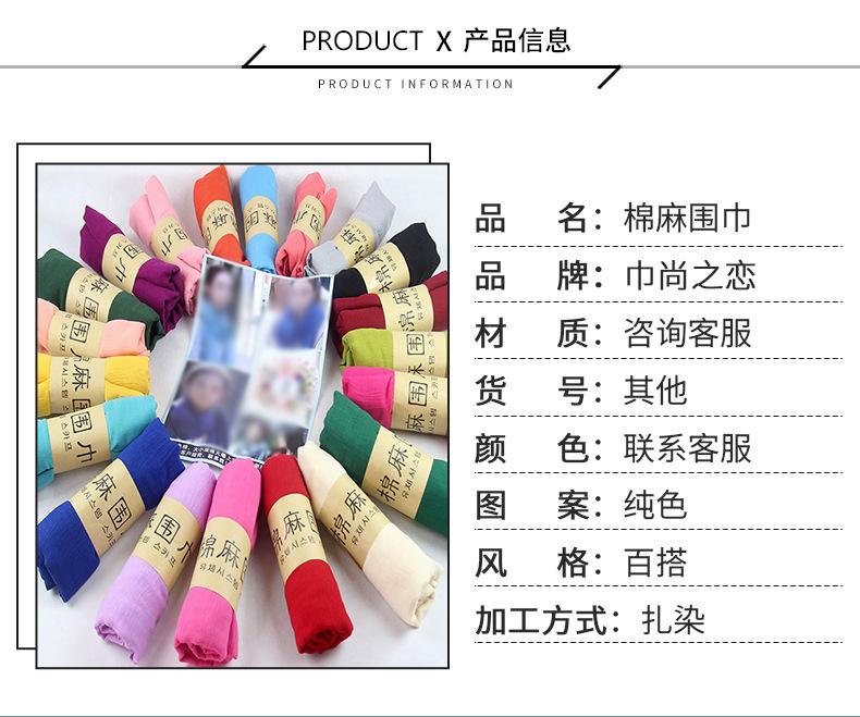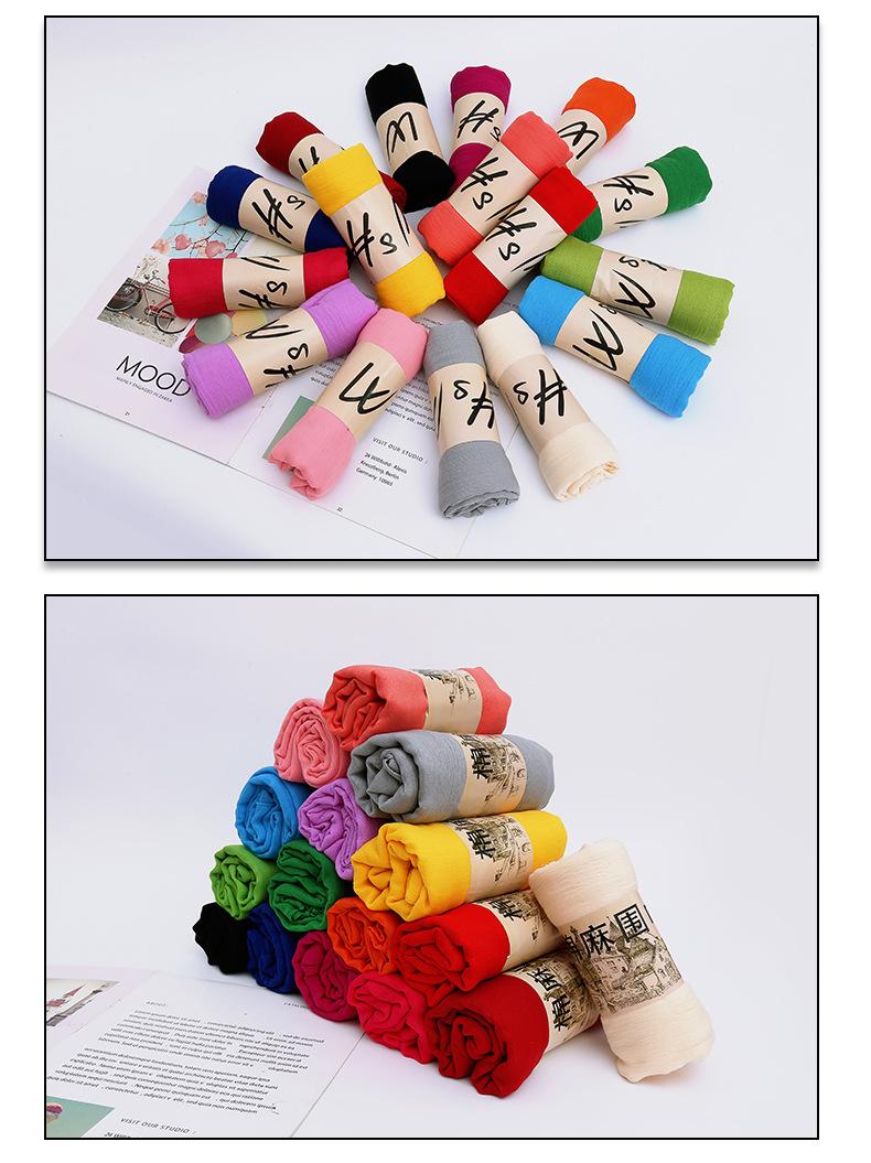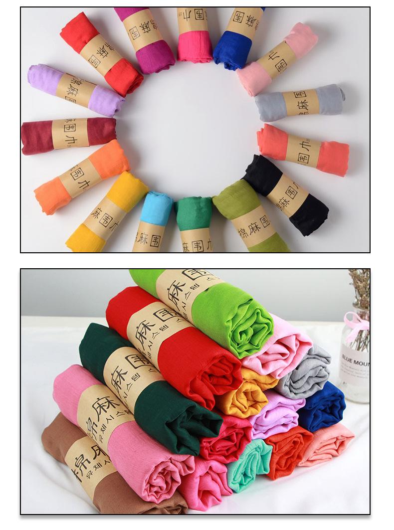 Bufanda de algodón y lino de color liso para mujer, chal largo de verano con protección solar, de lino y seda fina, combina con todo, para primavera y otoño e invierno.