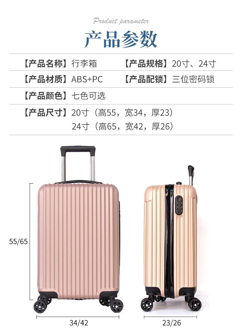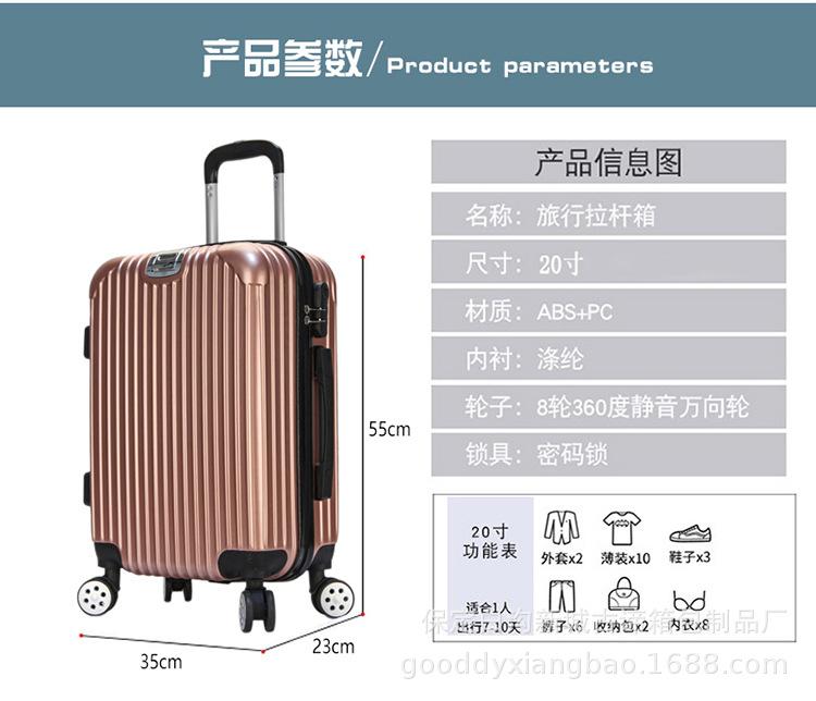 Nuevo Regalo de Moda Maleta Trolley con Cremallera Rueda Universal Maleta 20 pulgadas Diseño de Maleta Logo Caja con Contraseña