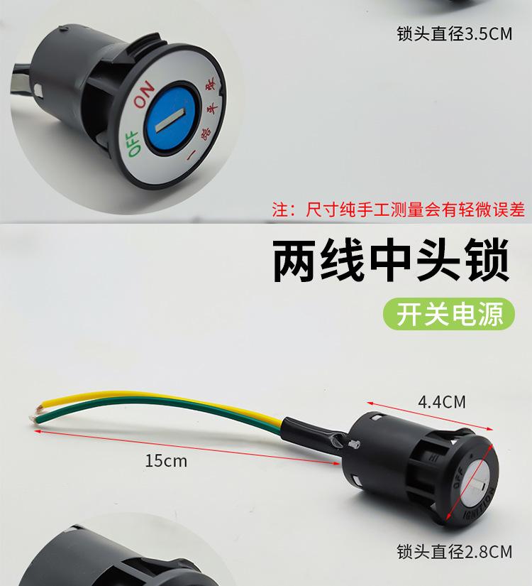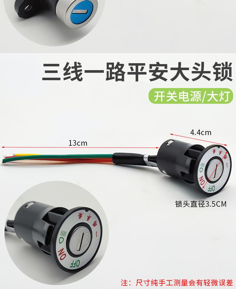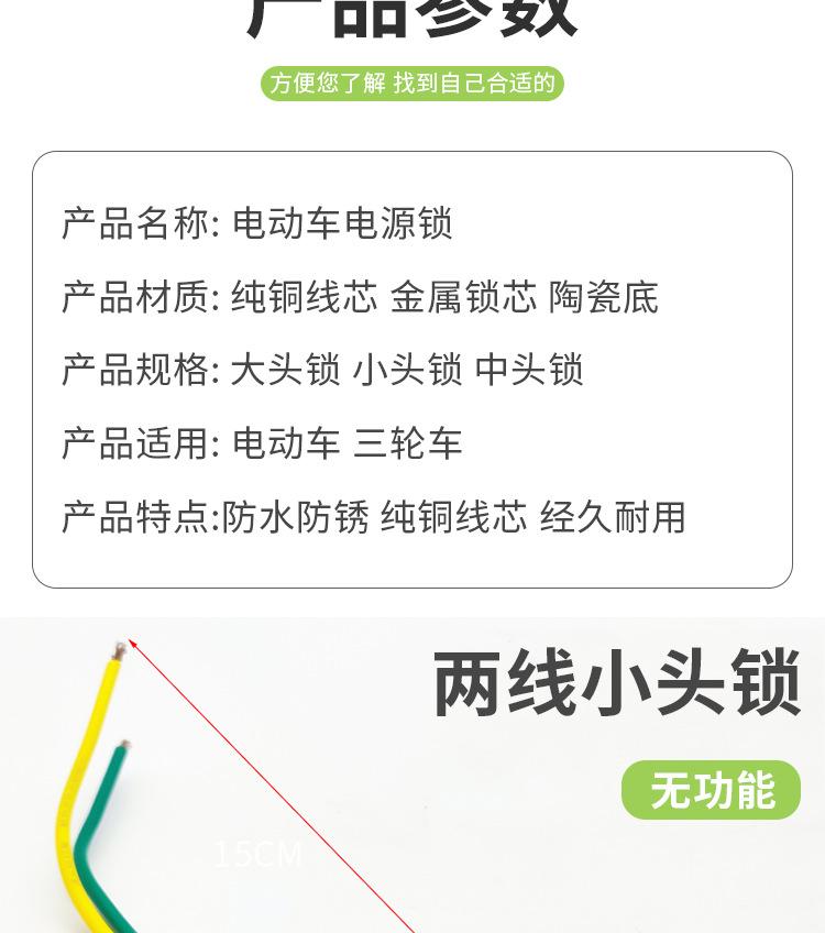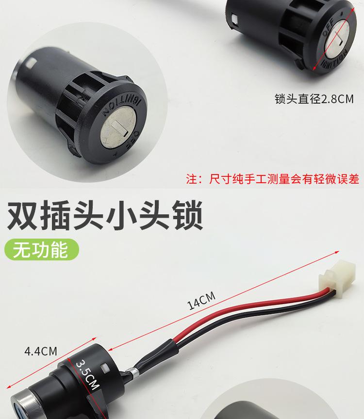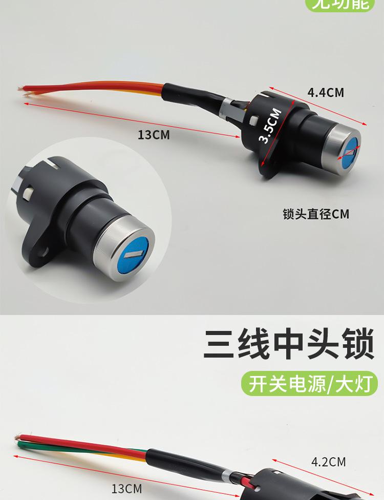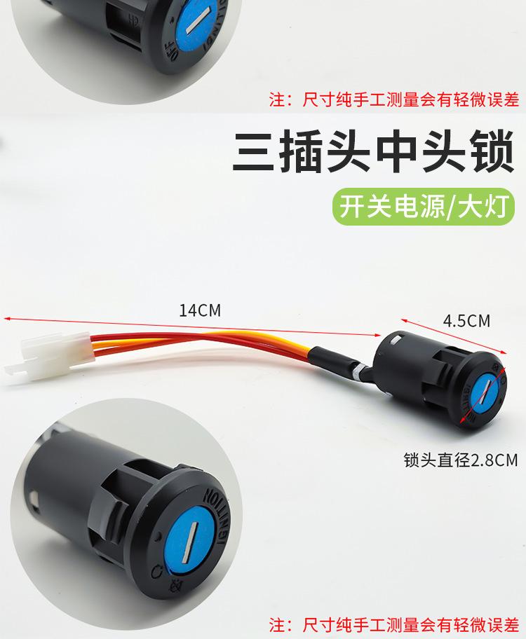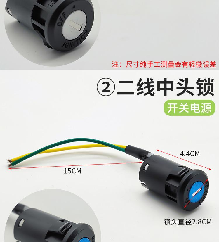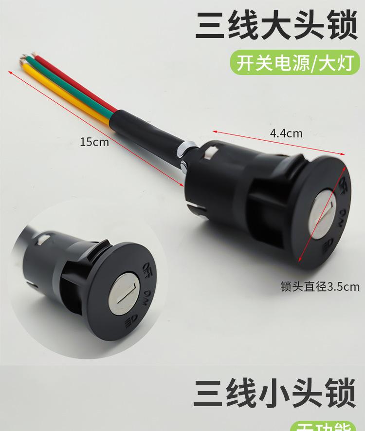 Este producto se divide en cerradura de cabeza grande, cerradura de cabeza mediana y cerradura de cabeza pequeña, cada una de las cuales se divide en tres cables y dos cables, con enchufe y sin enchufe. Puede elegir el enchufe en la cerradura eléctrica de la puerta según el enchufe para la línea de conexión en su automóvil, ahorrando tiempo de cableado. ¡Puede contactar al servicio al cliente para enviar imágenes de los enchufes! !