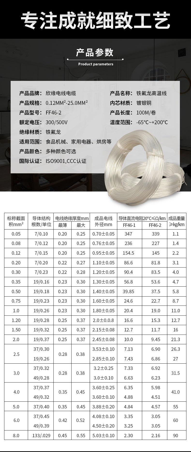 Estándar nacional FF46-2 Cable de teflón plateado Cable de teflón Cable de alta temperatura Cable resistente al calor Módulo de detección de tierra Cable textil de colores