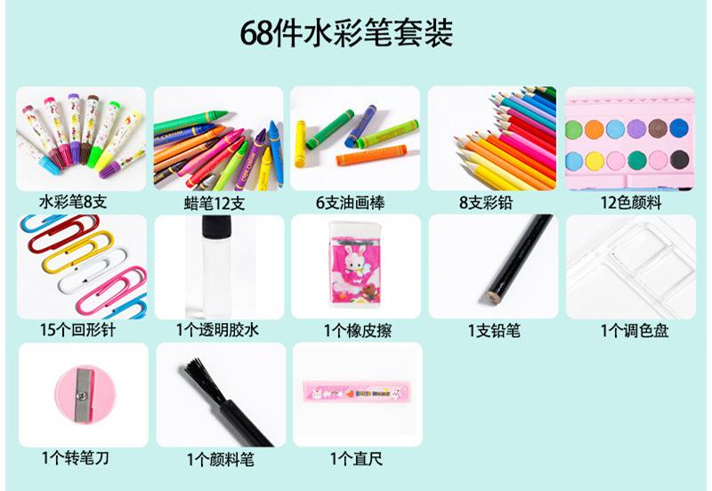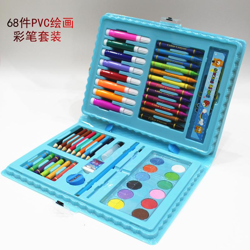 Juego de pintura para niños al por mayor de 68 piezas, juego creativo de pinceles de acuarela, combinación de papelería, regalo de vacaciones, juego para niños