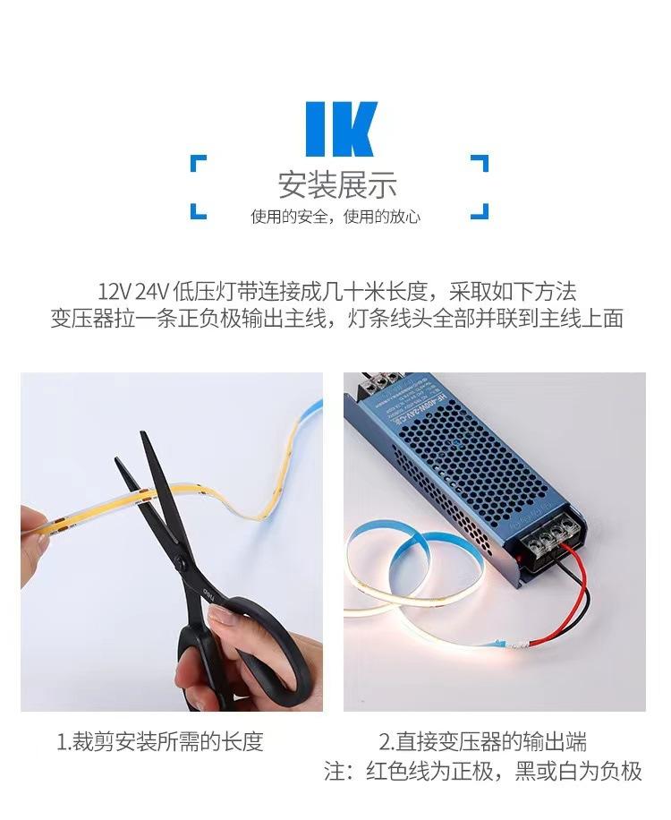 Lámpara COB de 12 V con autoadhesivo de bajo voltaje, tira de luz suave flexible de 24 V, lámpara de techo, decoración, libro, cocina, gabinete de vinos, línea súper brillante