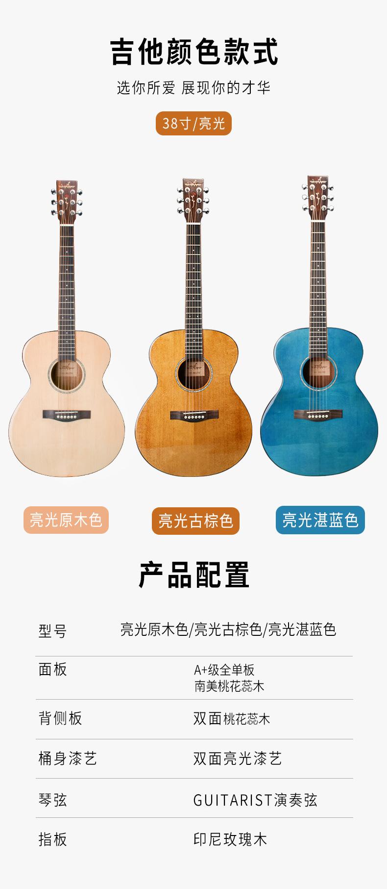 Guitarra Folk de un solo tablero de 38 pulgadas para principiantes, estudiantes masculinos y femeninos, nivel de interpretación de 38 pulgadas, principiante, autodidacta, para tocar y cantar, guitarra acústica de dedo.