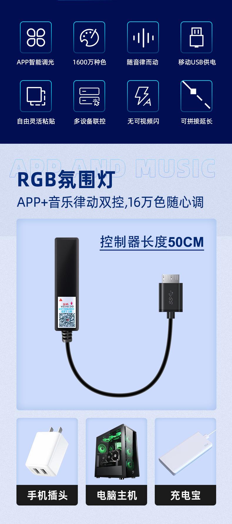 5v-remote control usb+RGB light strip set [ 1.3m lights] [Trial package] limited to shooting 1, 5V-Bluetooth u...