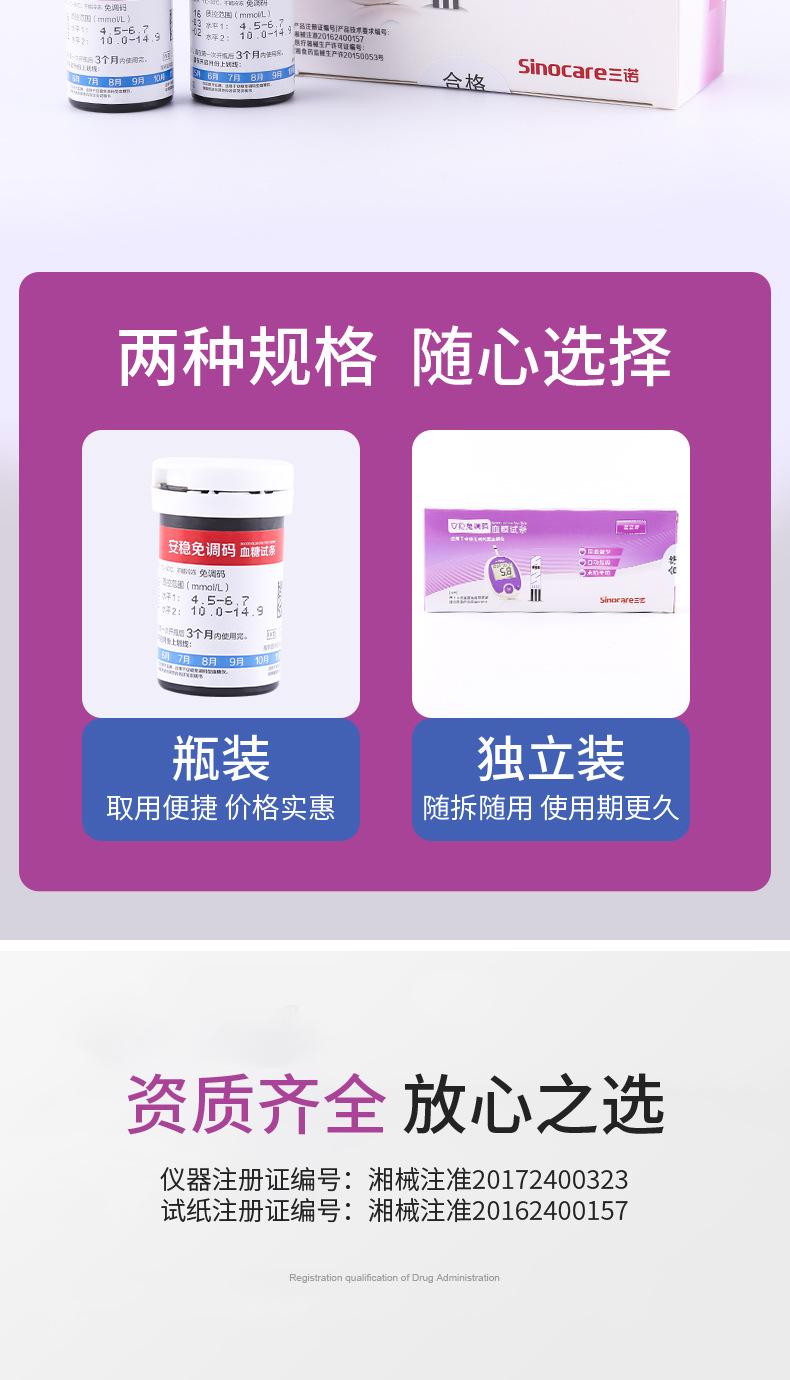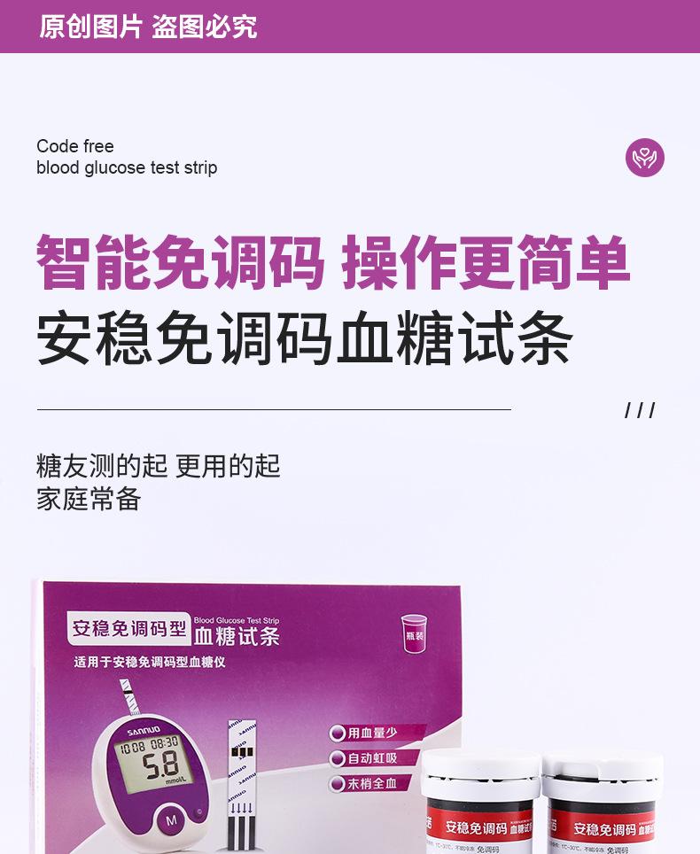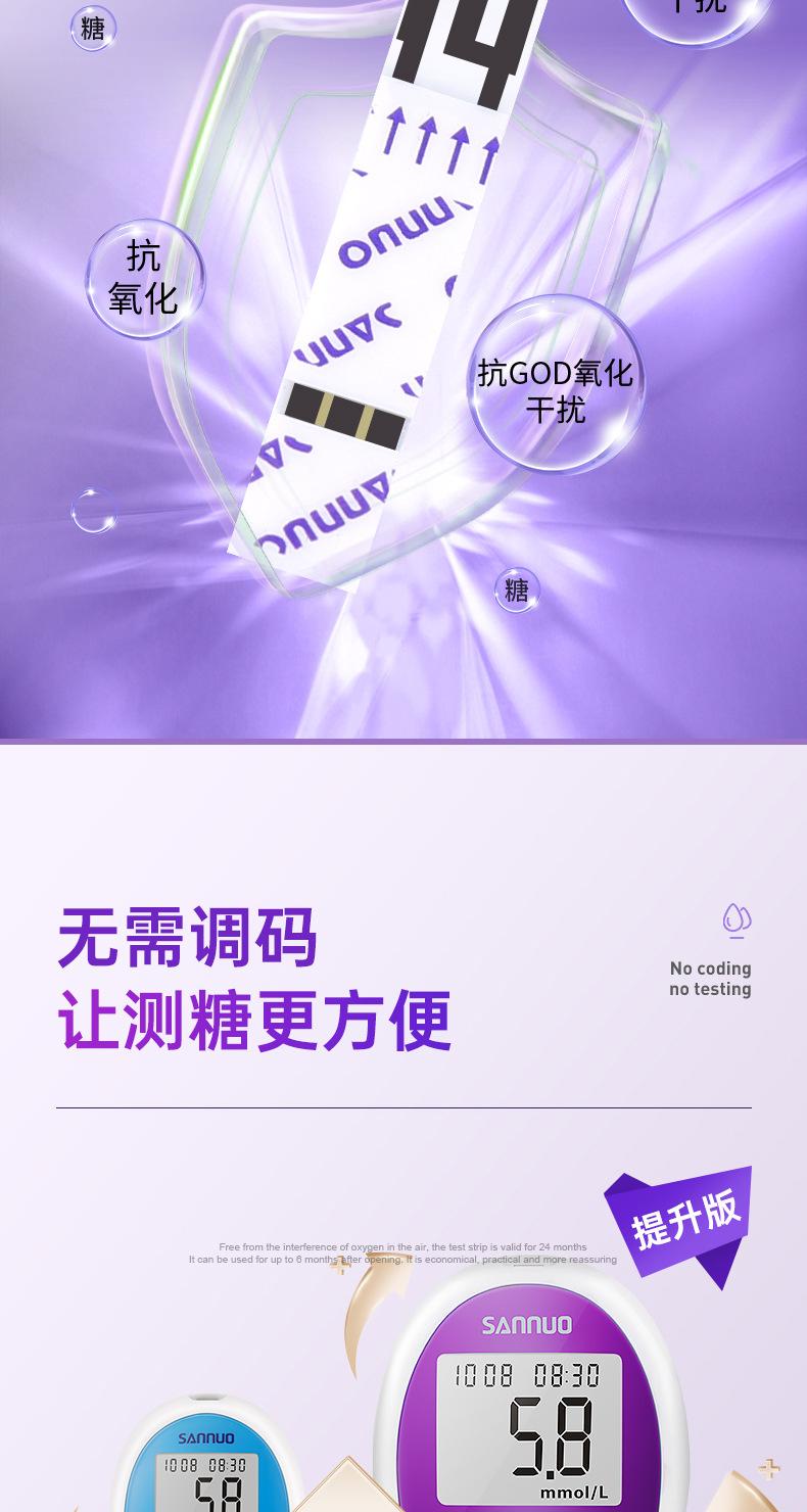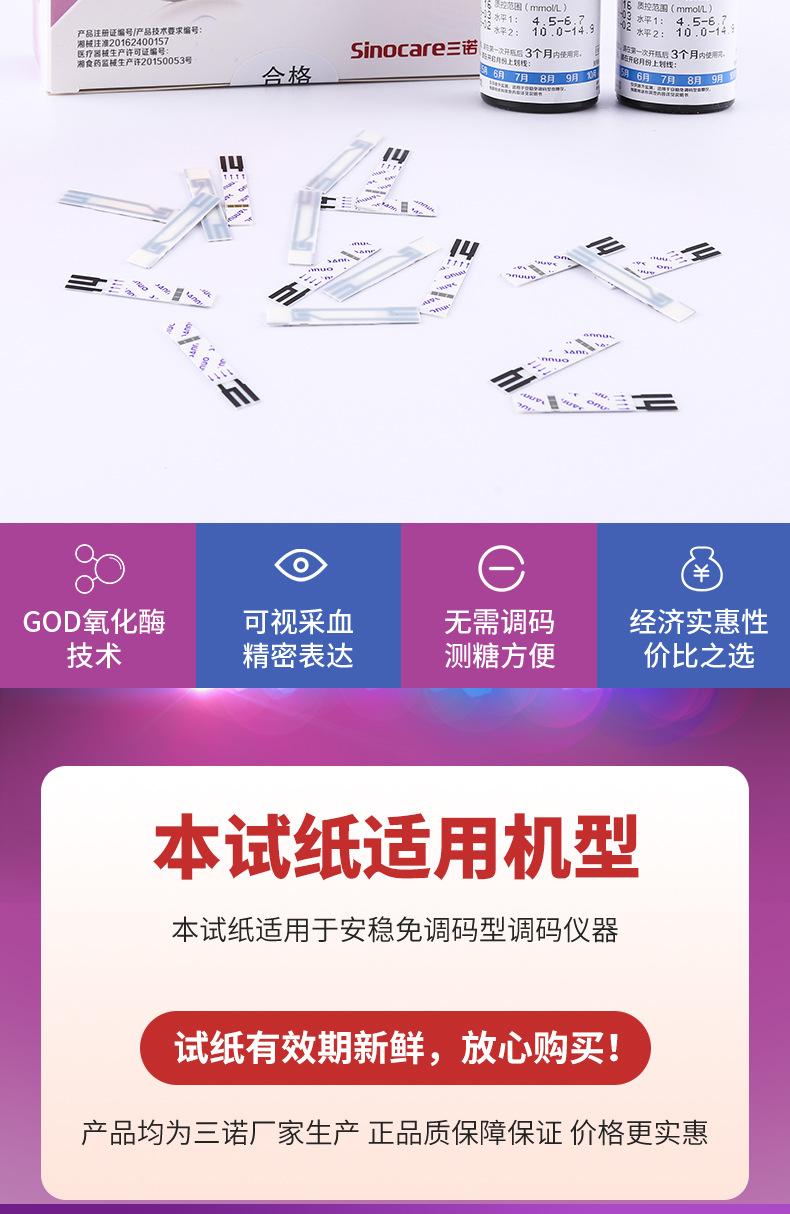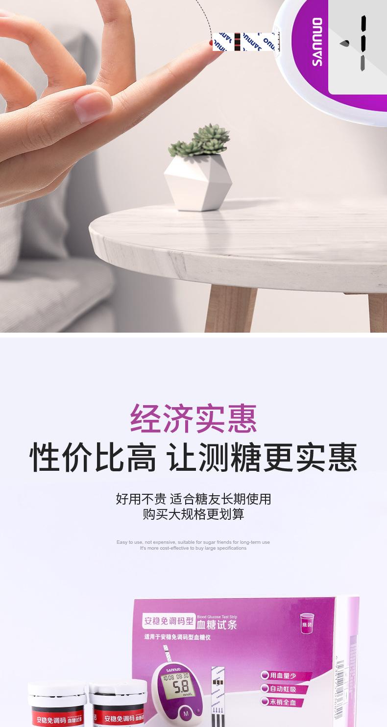 Papel de prueba de glucosa en sangre sin código de seguridad Sannuo, tiras reactivas para medir azúcar, instrumento automático de medición de precisión para el hogar, 50 unidades