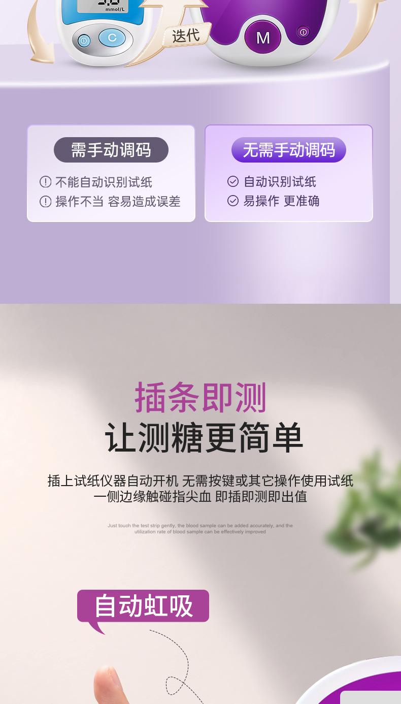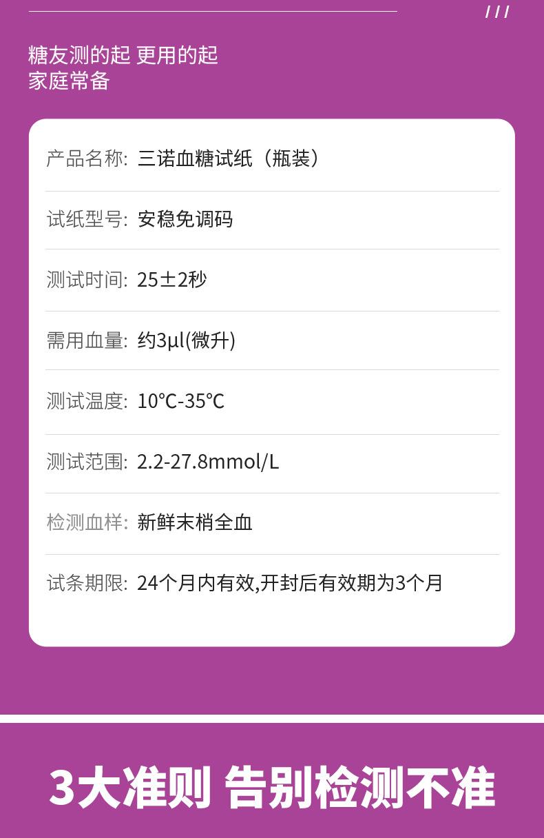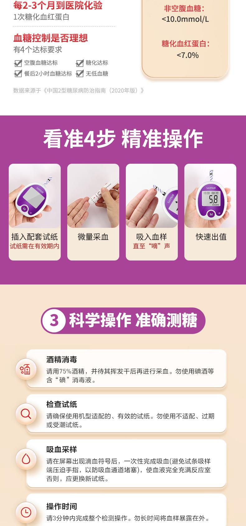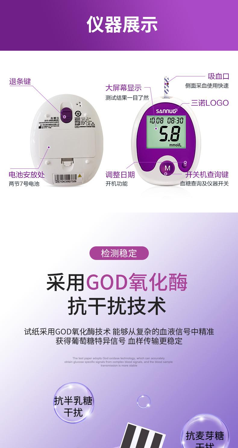 Papel de prueba de glucosa en sangre sin código de seguridad Sannuo, tiras reactivas para medir azúcar, instrumento automático de medición de precisión para el hogar, 50 unidades