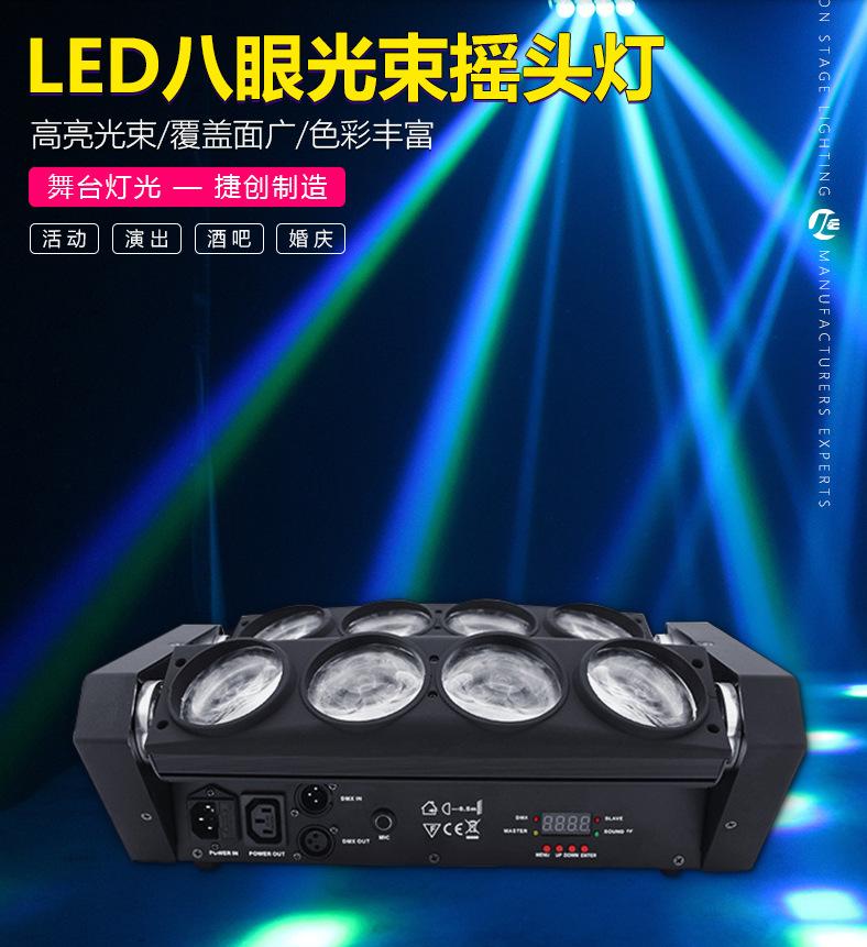 Compra Mini luz de araña LED, luz de escenario, luz de barra KTV, luz teñida, luz de haz de ocho ojos, luz de control de sonido con cabeza móvil a todo color para DJ al por mayor en Joom.pro