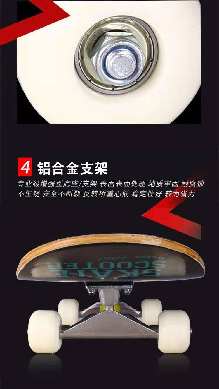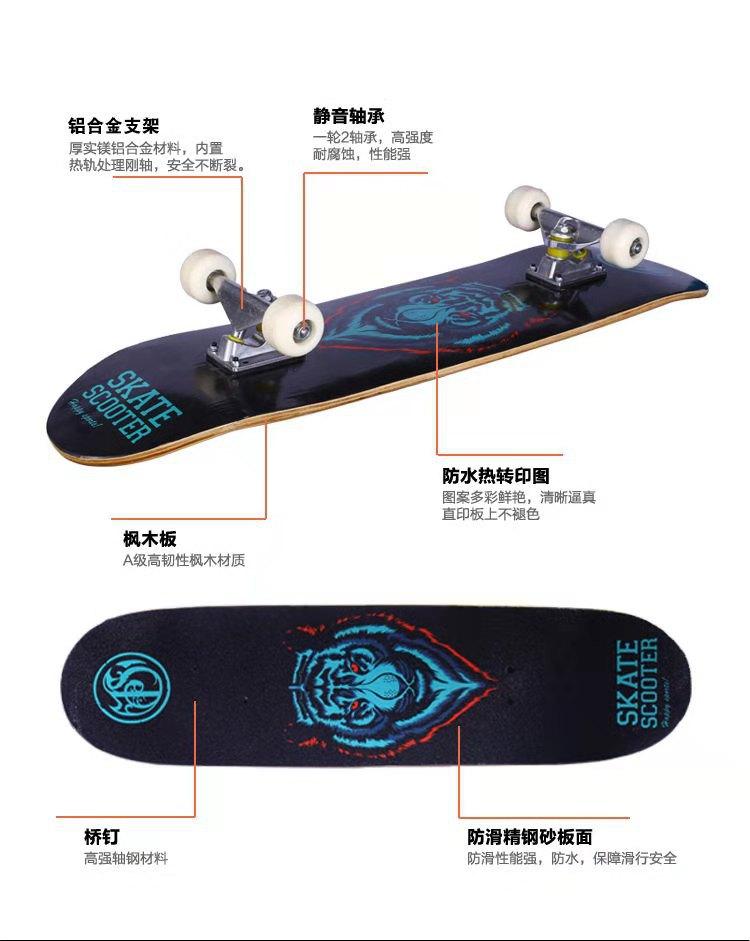 Nombre del producto: Patineta de calle de arce chino con grabado de doble inclinación de cuatro ruedas