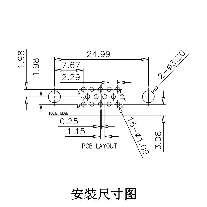 Conector VGA D-SUB, base de orificio HDR15 de tres filas, pin doblado de 90 grados, placa de soldadura DB15 de 15 pines