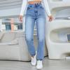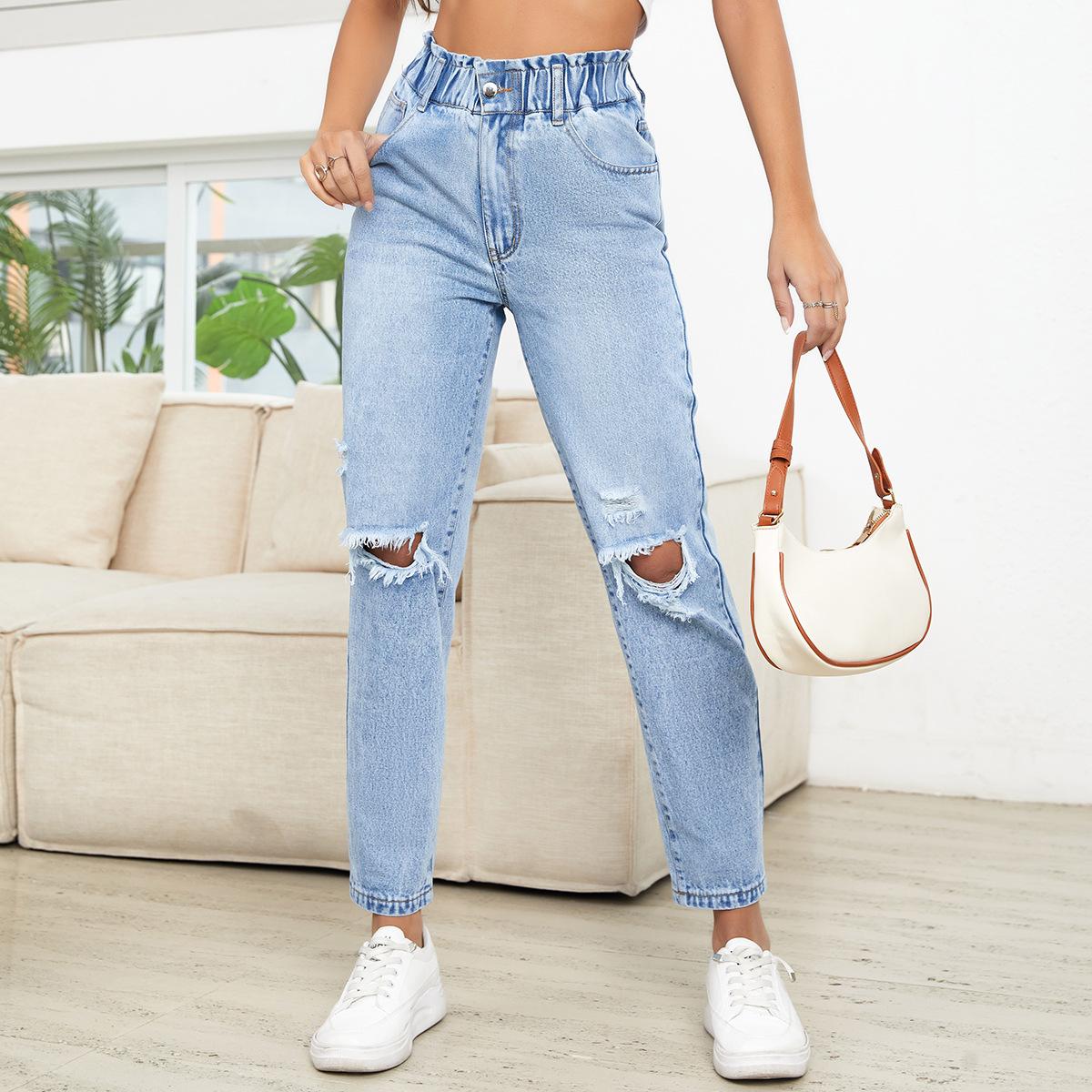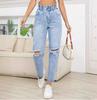 35 # En Stock-35763 # Ropa de Mujer Transfronteriza de Amazon Tendencia Ins Europea y Americana Look Adelgazante Pantalones de Mezclilla Rectos Rotos