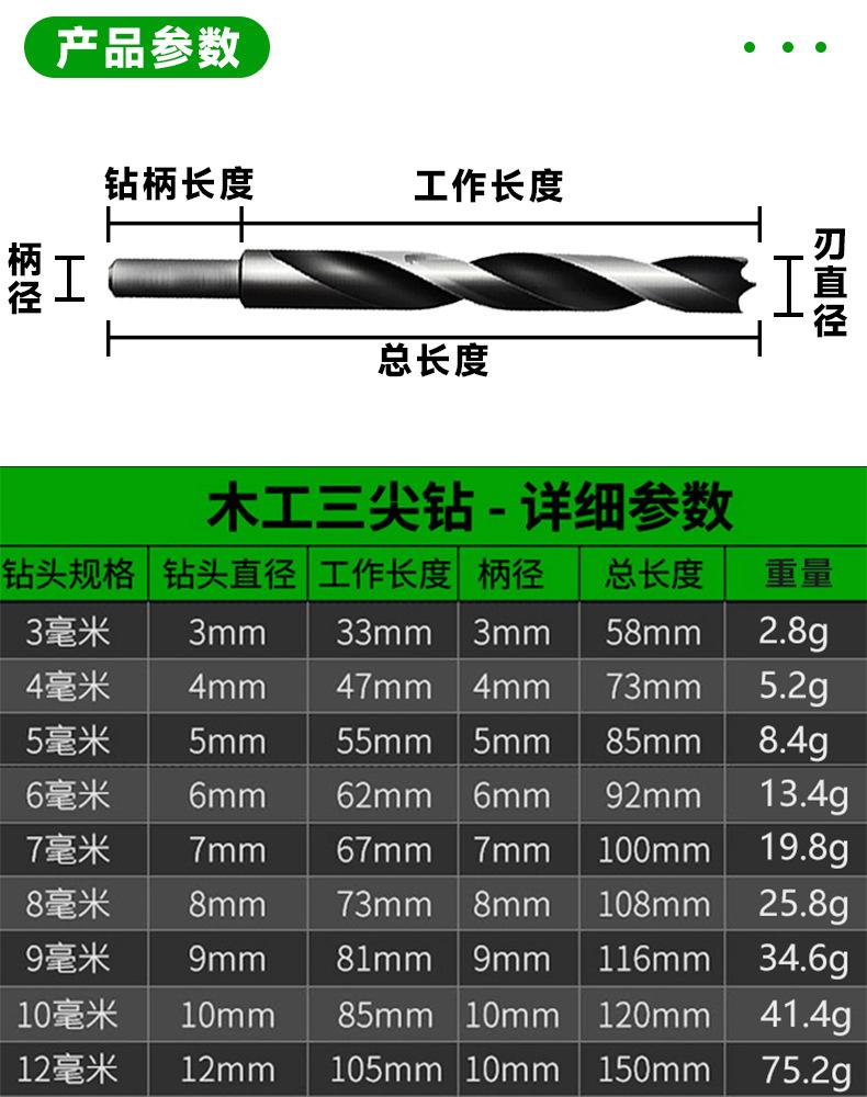 Woodworking three-point drill bit 3mm, Woodworking three-point drill bit 4mm, Woodworking three-point drill bi...