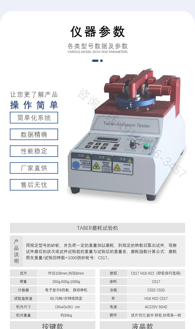 Suitable for abrasion testing of leather, fabric, coatings, paper, floor tiles, plywood, glass, natural rubber, and more