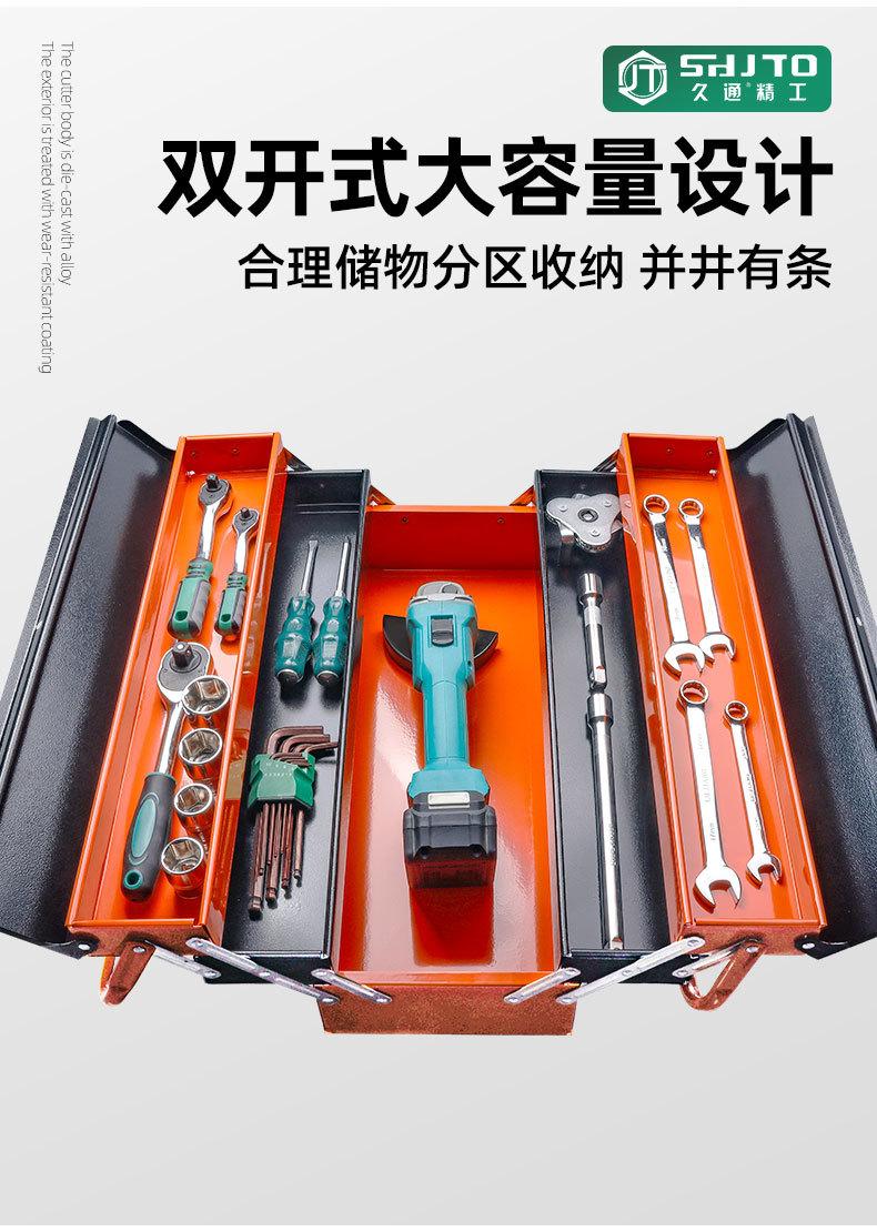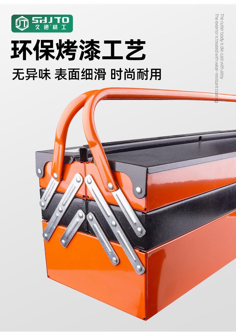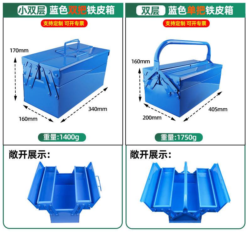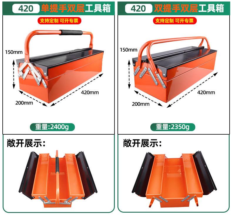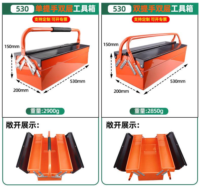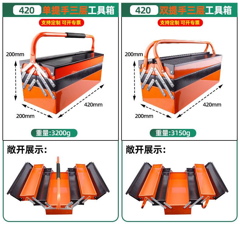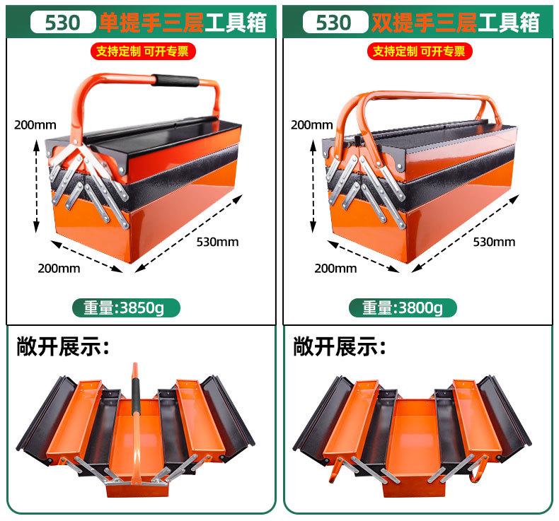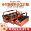 Caja de herramientas de hierro gruesa, grande, portátil, para mantenimiento de automóviles, ferretería doméstica, caja de almacenamiento plegable de tres capas