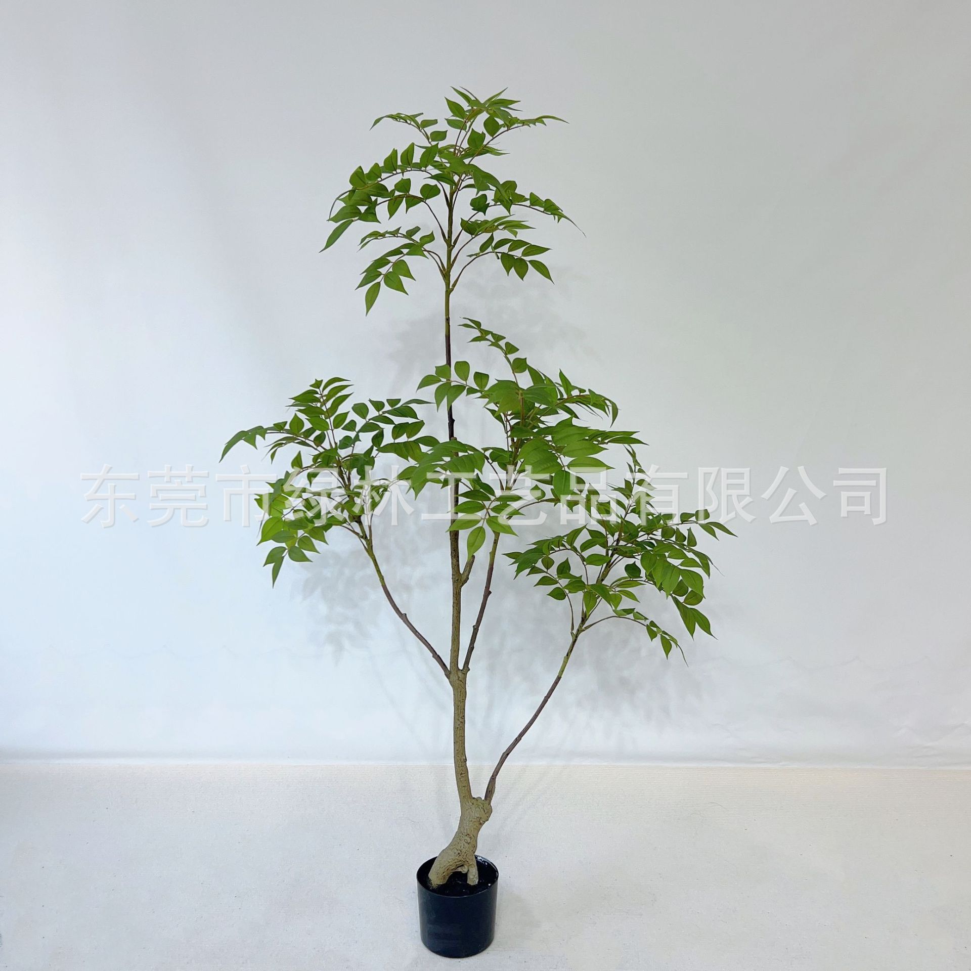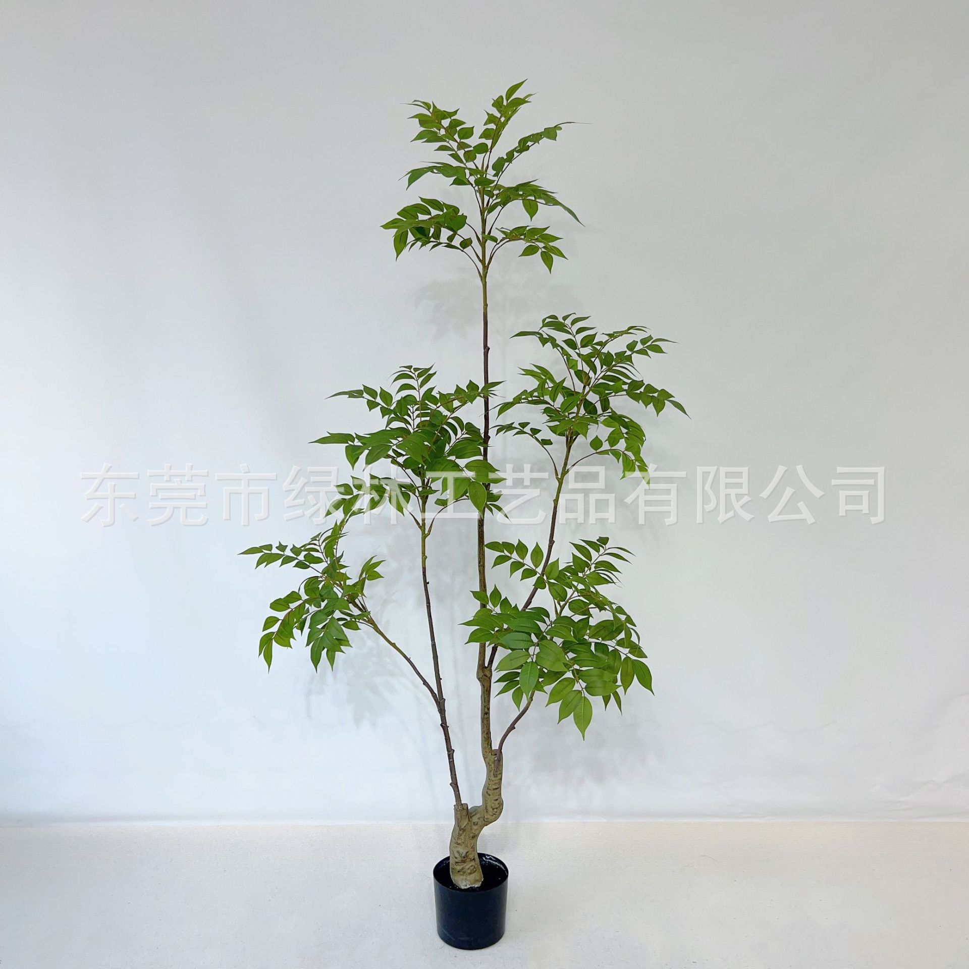 Planta verde artificial, árbol de madera pintada a mano, luz de lujo, árbol Toona, maceta para suelo, interior, hogar, árbol artificial biónico de alta gama, paisaje