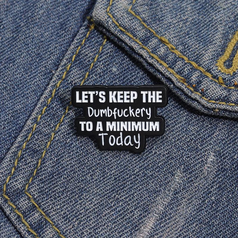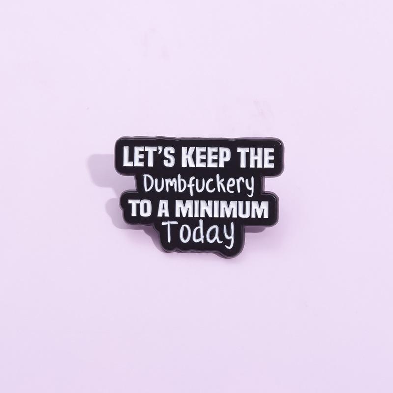 Broche de metal con letras en inglés, creativo y divertido, de dibujos animados, color negro, con frases cortas, accesorio, insignia, para Europa y Estados Unidos.