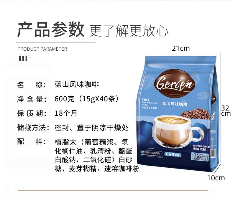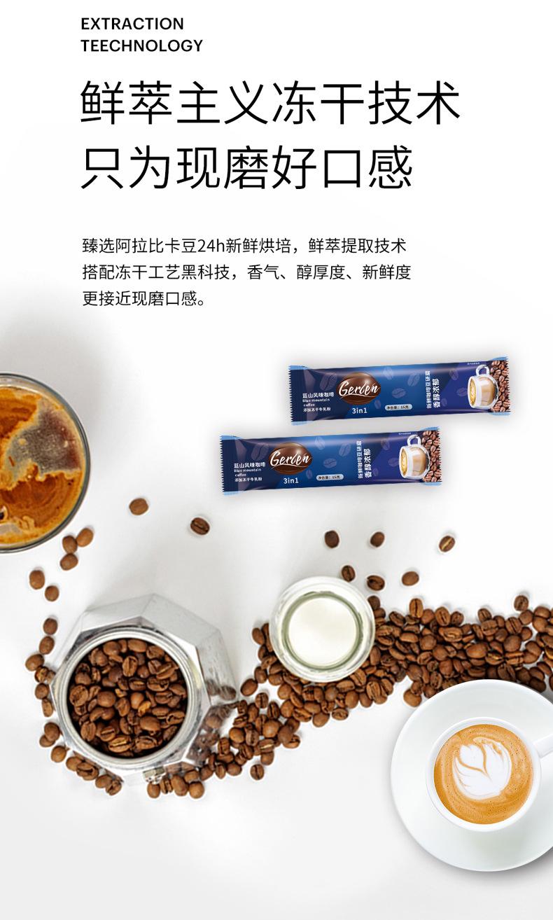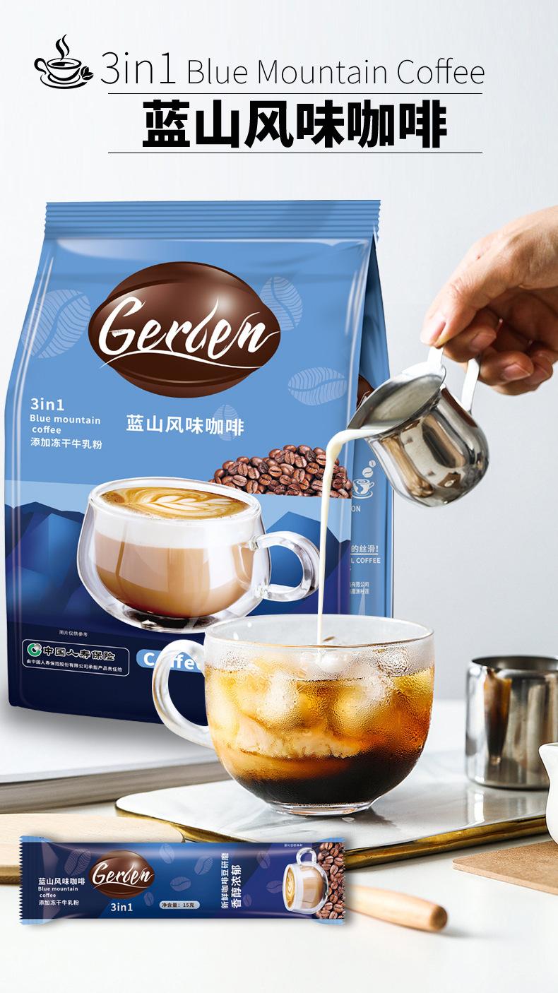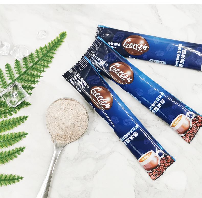 Café Blue Mountain tres en uno en polvo instantáneo granos de café fresco latte sabor original fábrica de café comercial ventas directas al por mayor