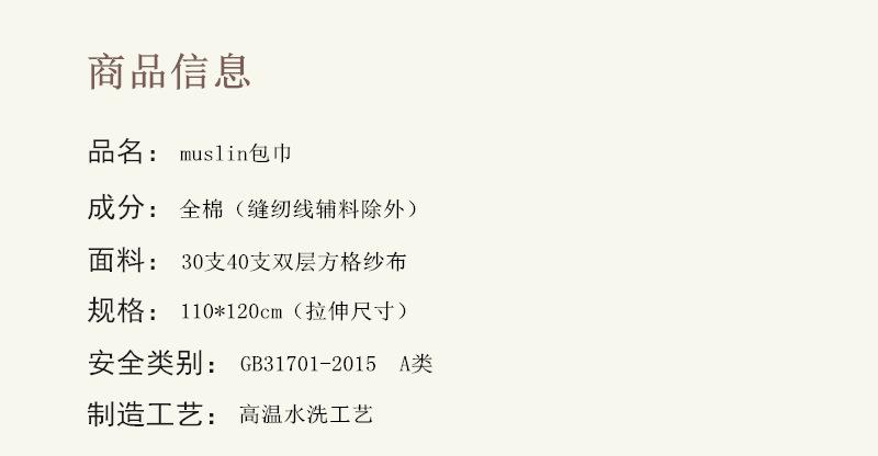 2. Envoltura de dos capas de gasa de algodón de muselina, tamaño 110*120cm (tamaño estirado)