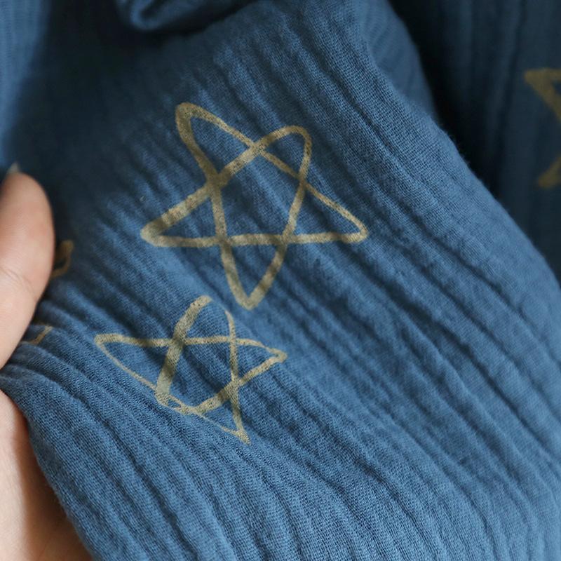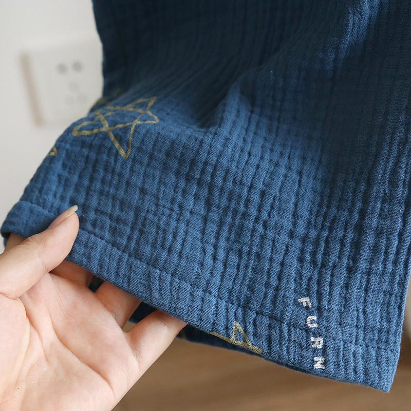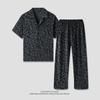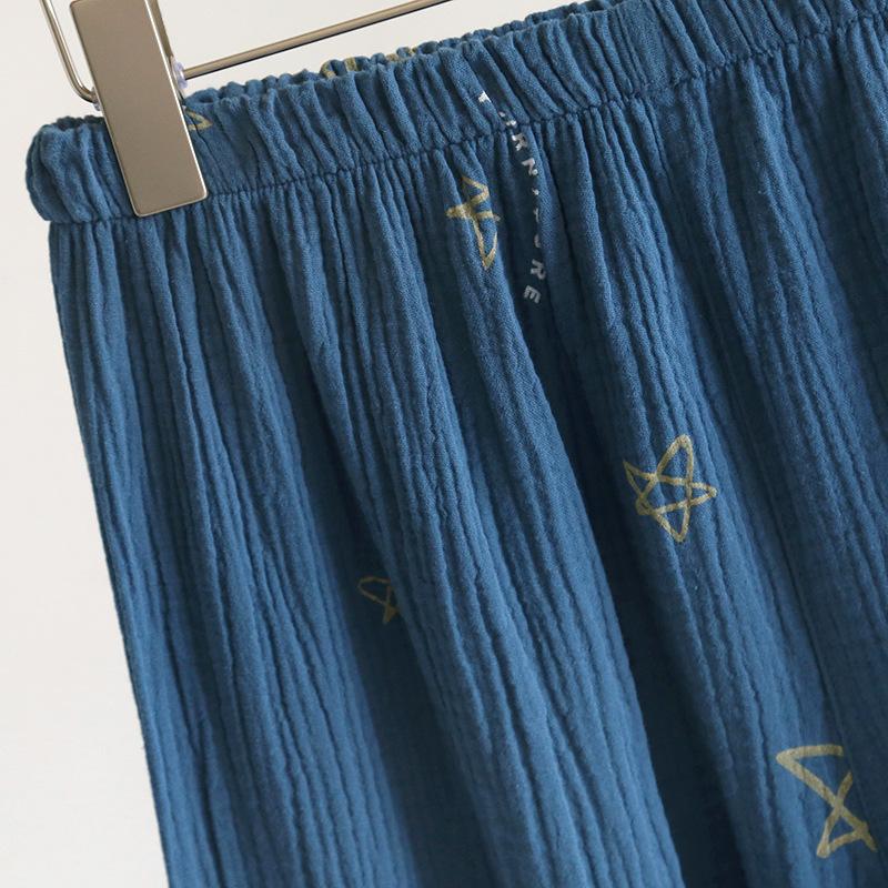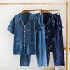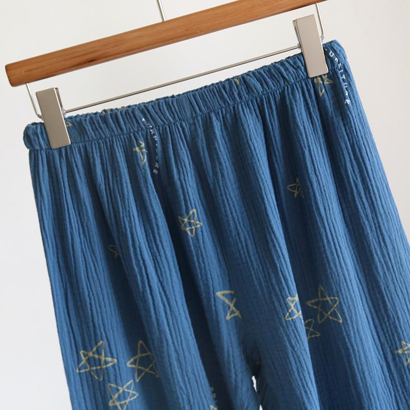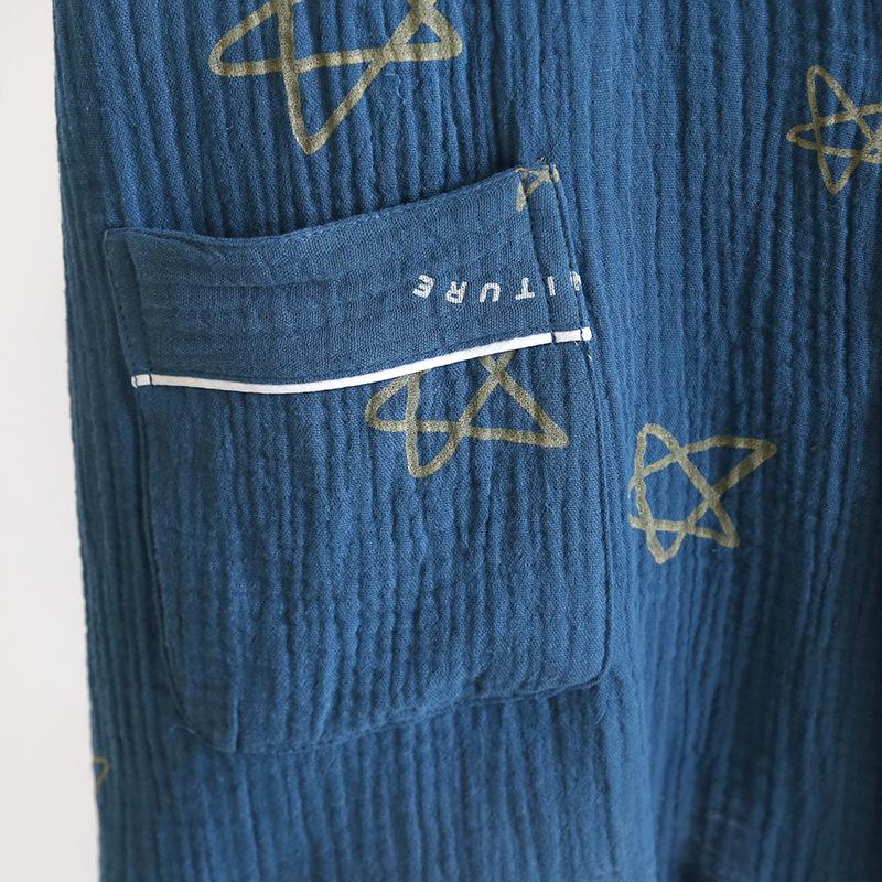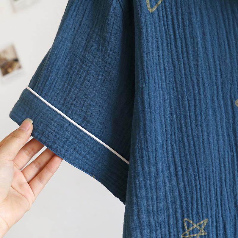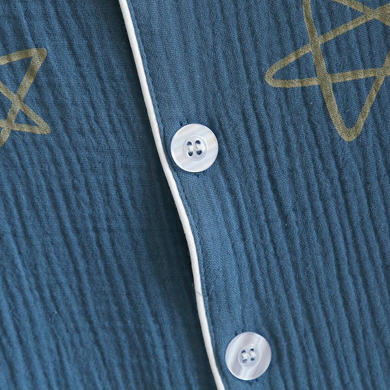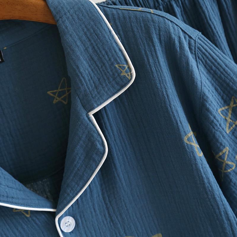 Traje de Crepé para Hombre Nuevo para Casa Primavera y Otoño Estrella de Cinco Puntas Manga Corta Pantalones Algodón Bicolor Pijama para Casa Transpirable Absorción de Sudor