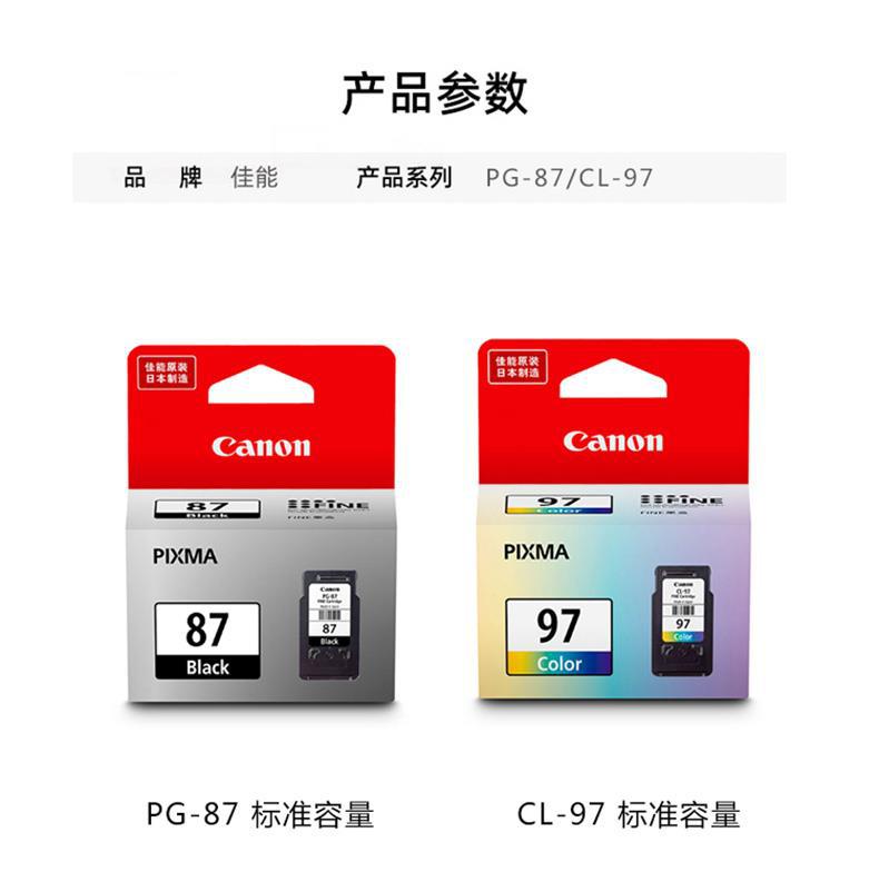PG-87 black 21ml/800 pages, CL-97 color 12ml/400 pages, 87 97 standard capacity black color set, PG-87 black s...