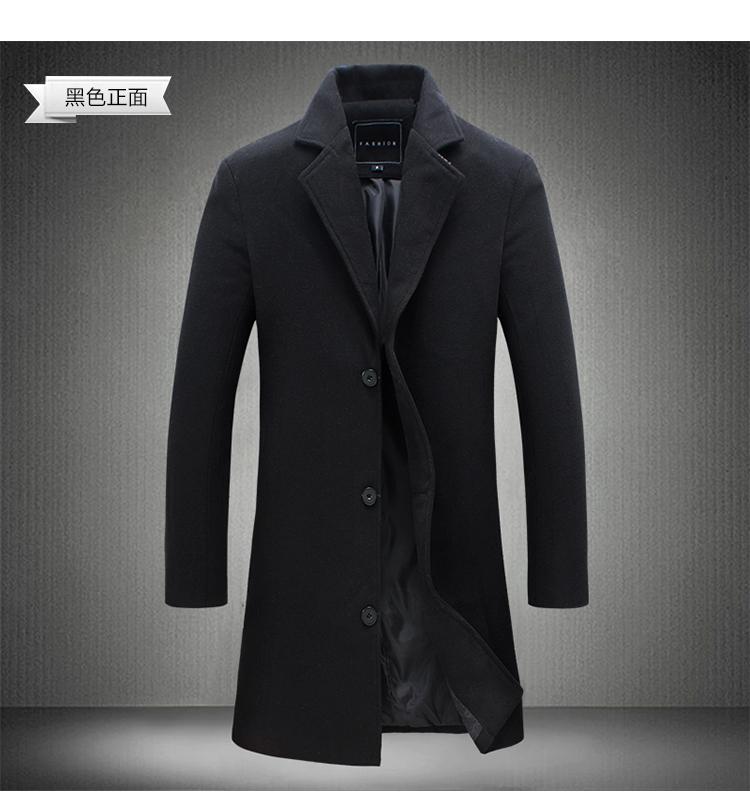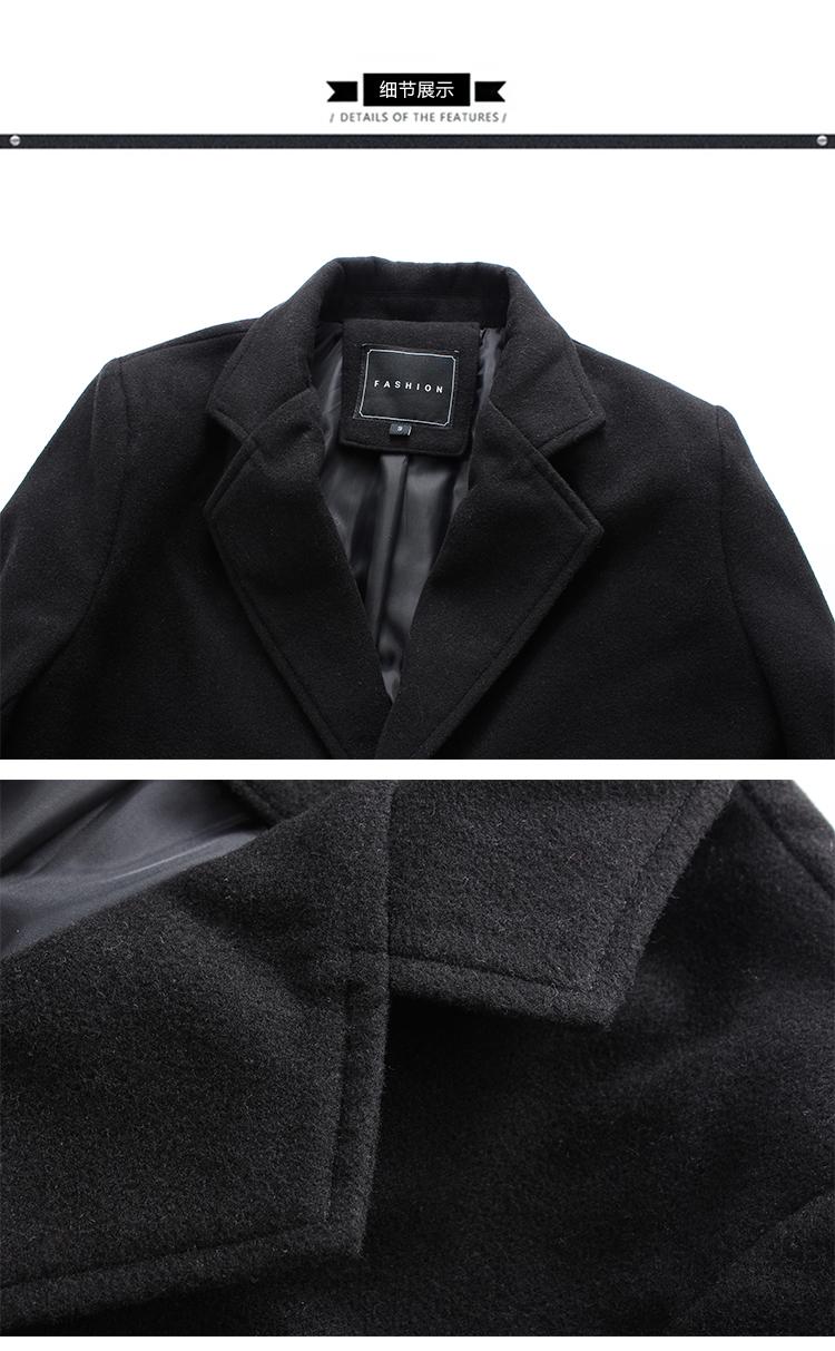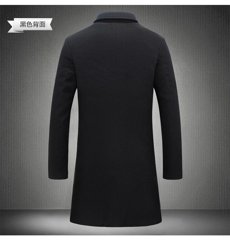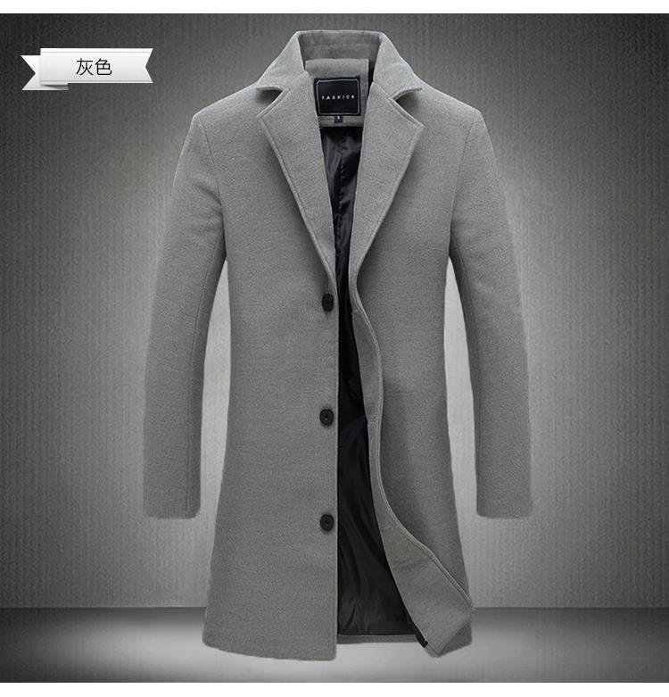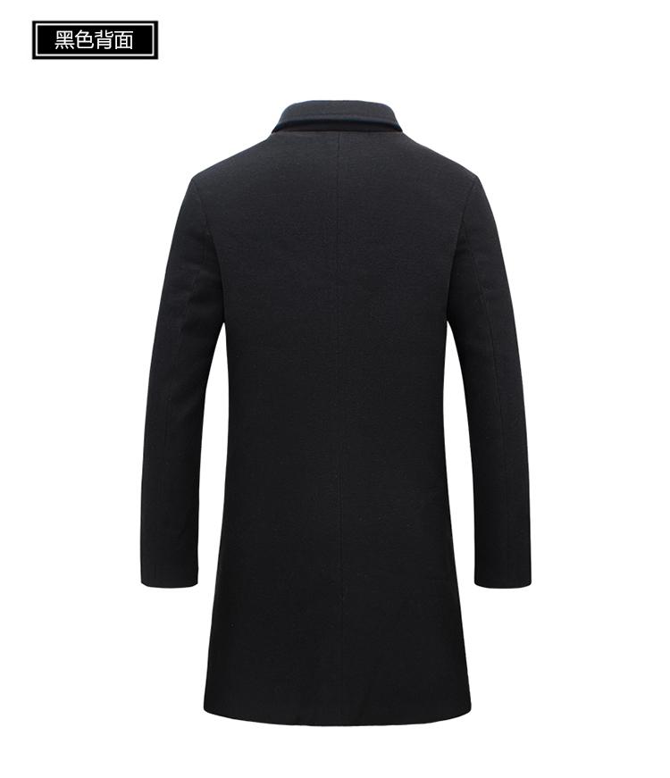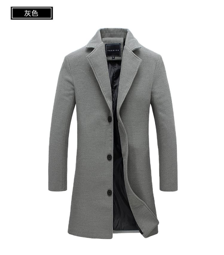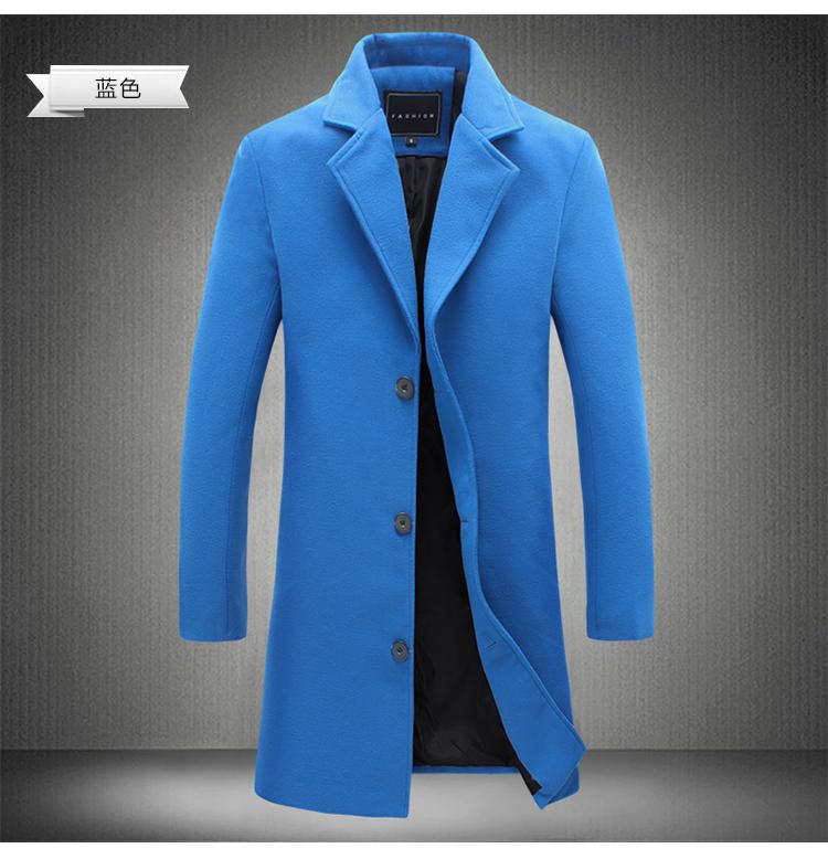 Abrigo Largo de Lana Perenne para Hombre de Otoño, Abrigo de Lana para Hombre Estilo Coreano Slim-fit Color Sólido Talla Grande Azulejo