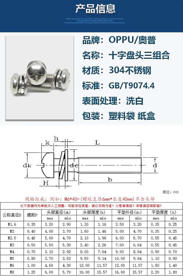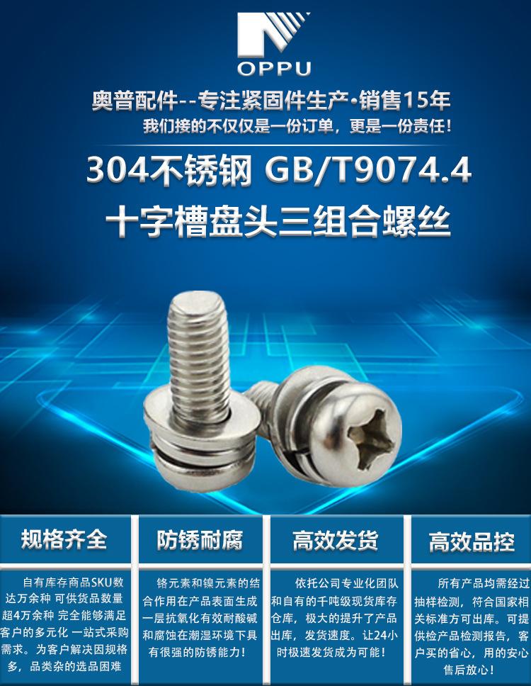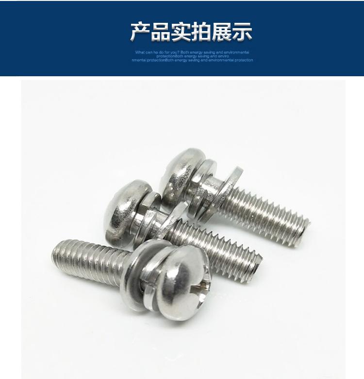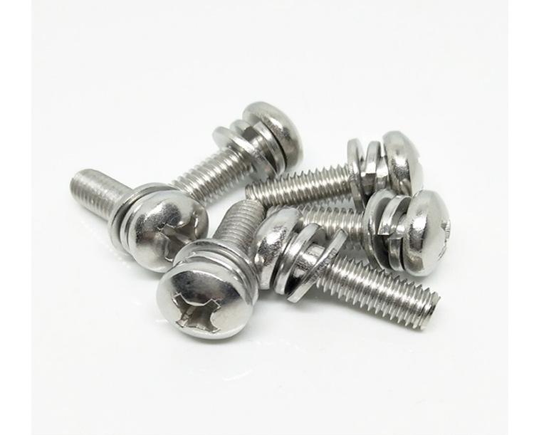 Tornillos de combinación de tres piezas con cabeza plana y ranura en cruz de acero inoxidable 304, tornillos de combinación de tres piezas con cabeza redonda y almohadilla de resorte plana en cruz 9074.4