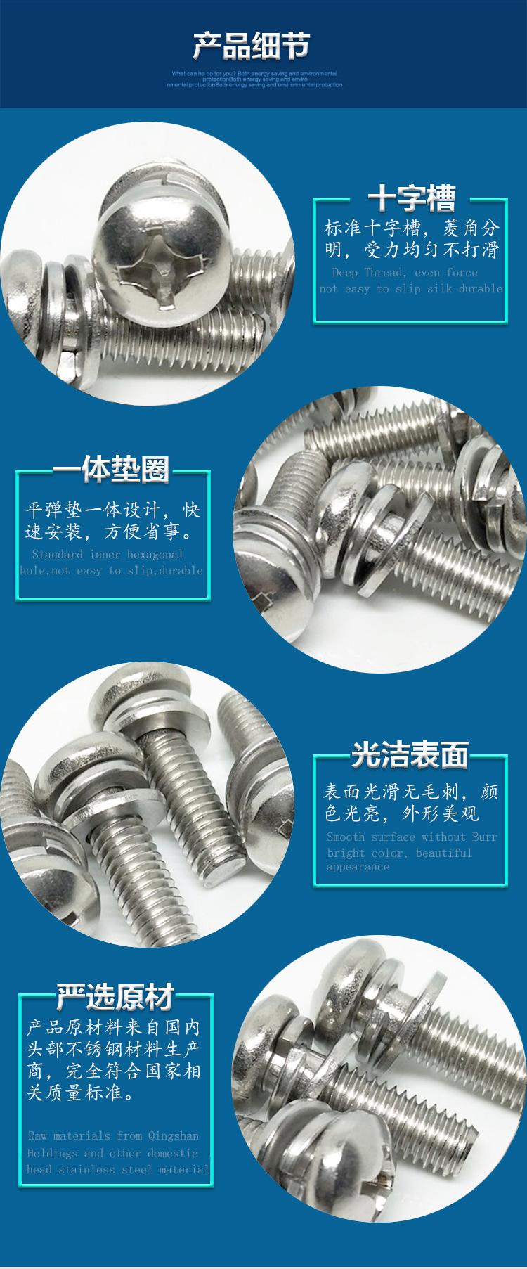 Tornillo de cabeza ahuecada de tres tornillos de combinación hexagonal de acero inoxidable 304, tornillo de combinación hexagonal de acero inoxidable
