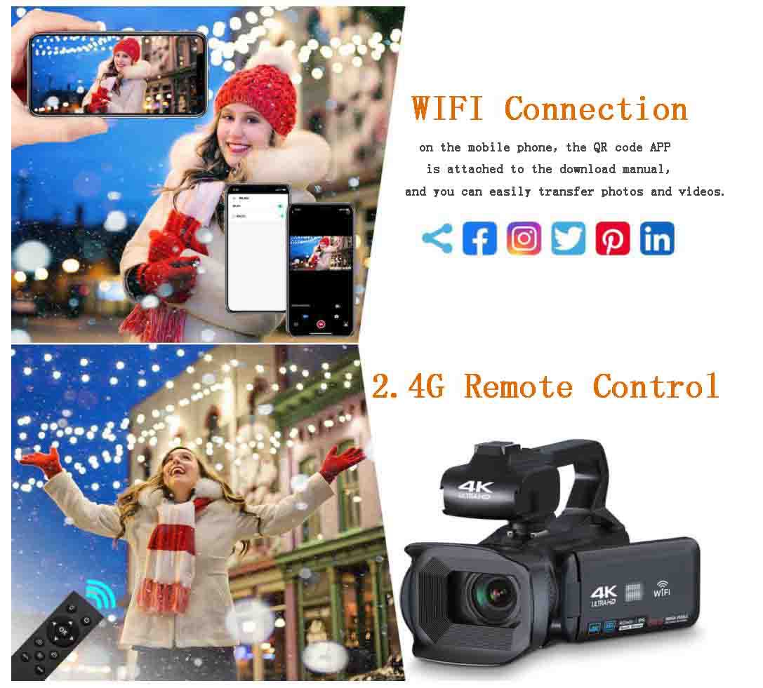 Cámara digital HD WIFI con pantalla táctil de 4 pulgadas 64 millones de píxeles videocámara 4K Disparo de 64MP DV