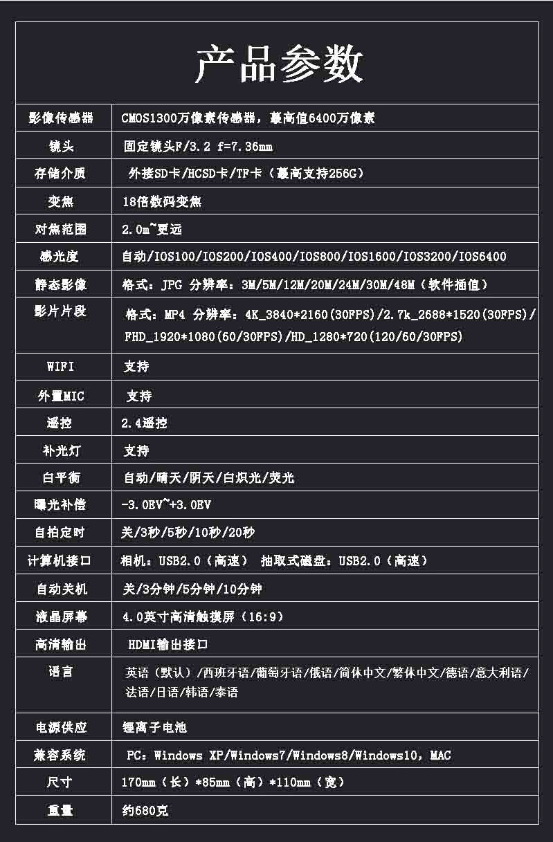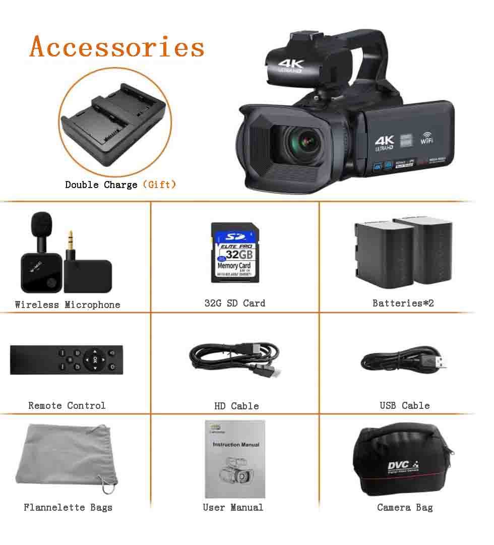 With LED light, With steering focus spotlight version, With microphone, 64GB Card Reader, Original battery, 12...