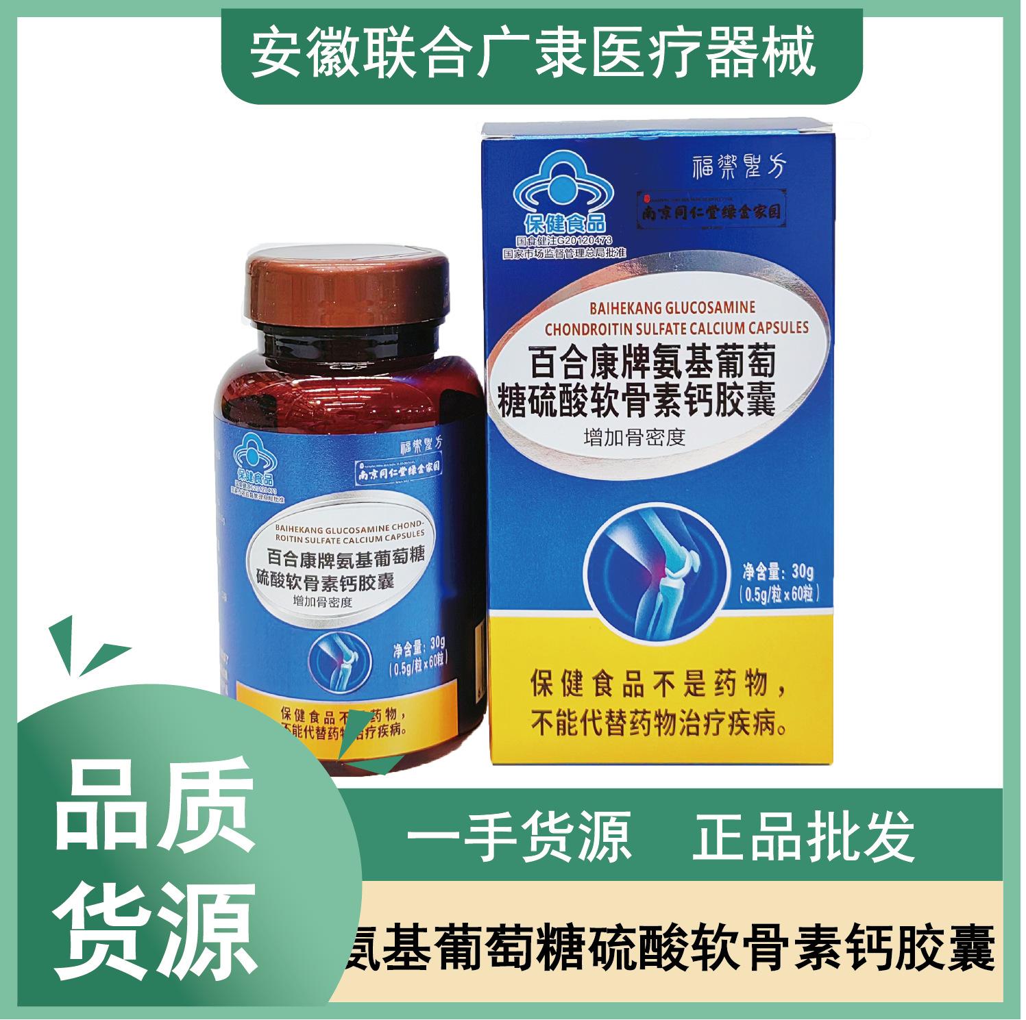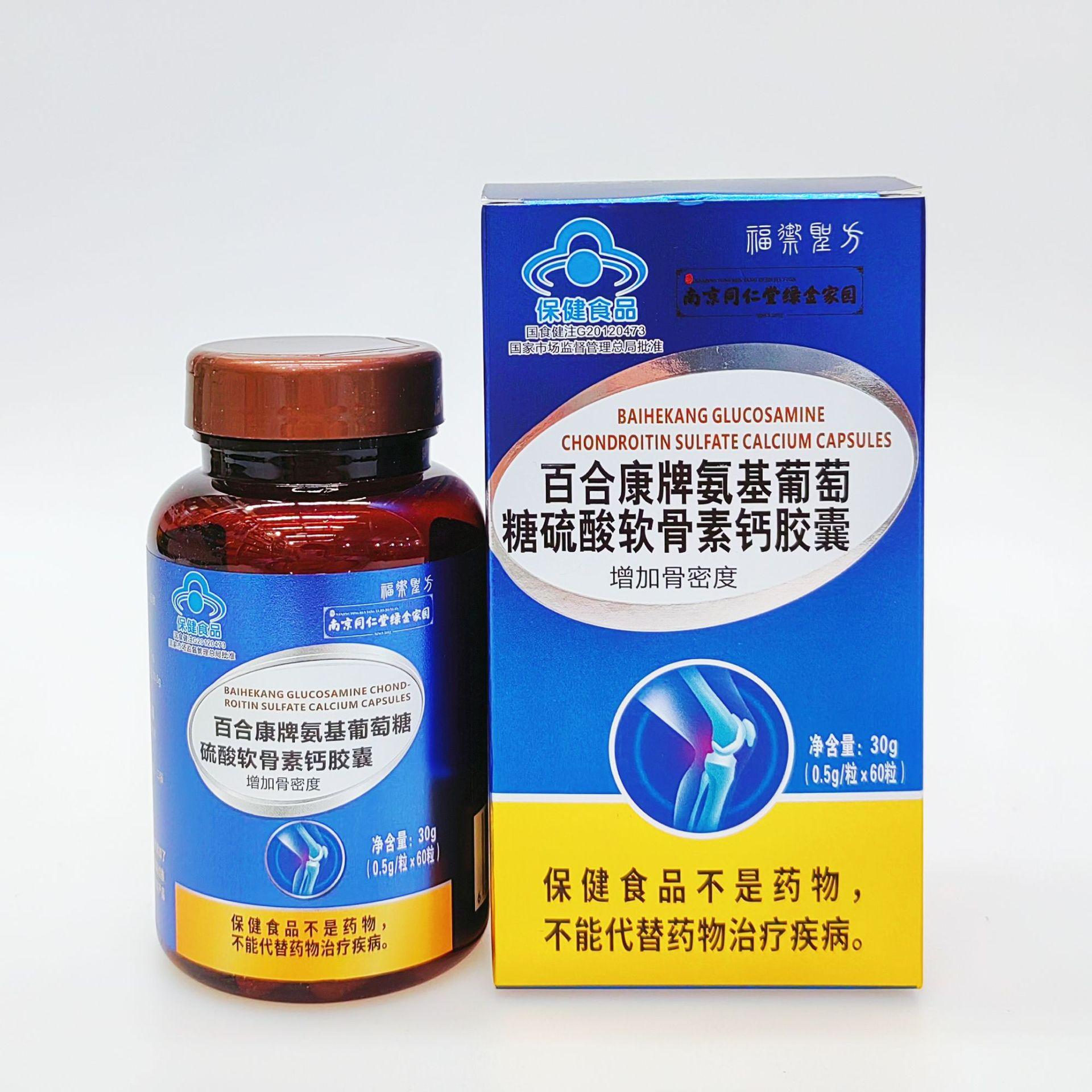Cápsulas de glucosamina, condroitina y sulfato de calcio de la marca Nanjing Tongrentang Baihekang, 60 granos, venta al por mayor