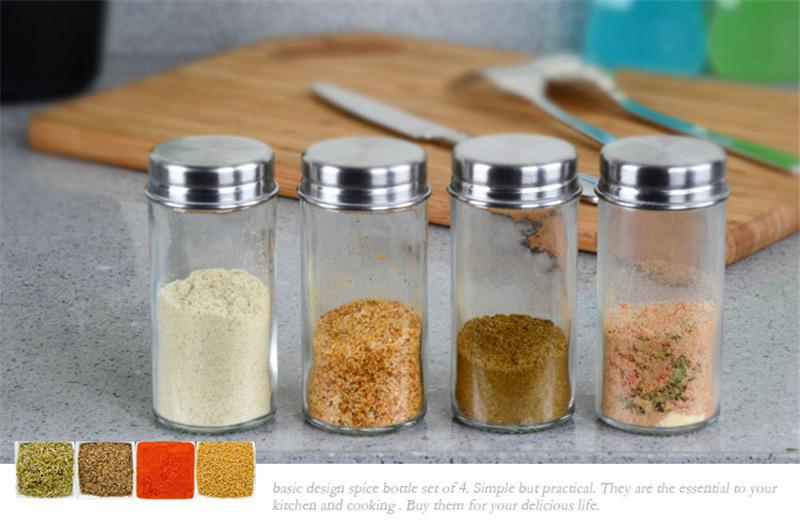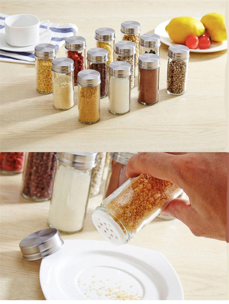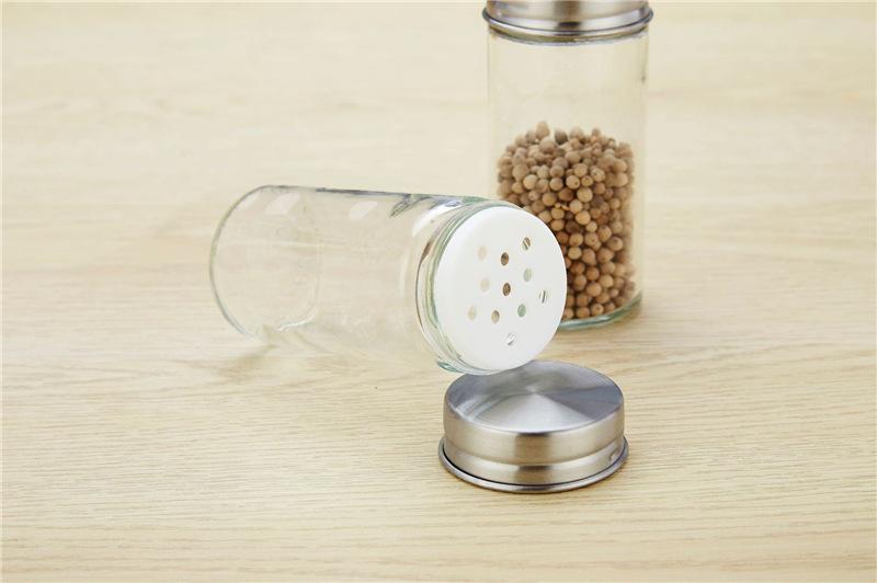 Suministros de cocina, tarro de condimento de acero inoxidable, botella de condimento de vidrio, pimienta para barbacoa, botella de pimienta en polvo, palillo de dientes, tarro de sal para pimienta