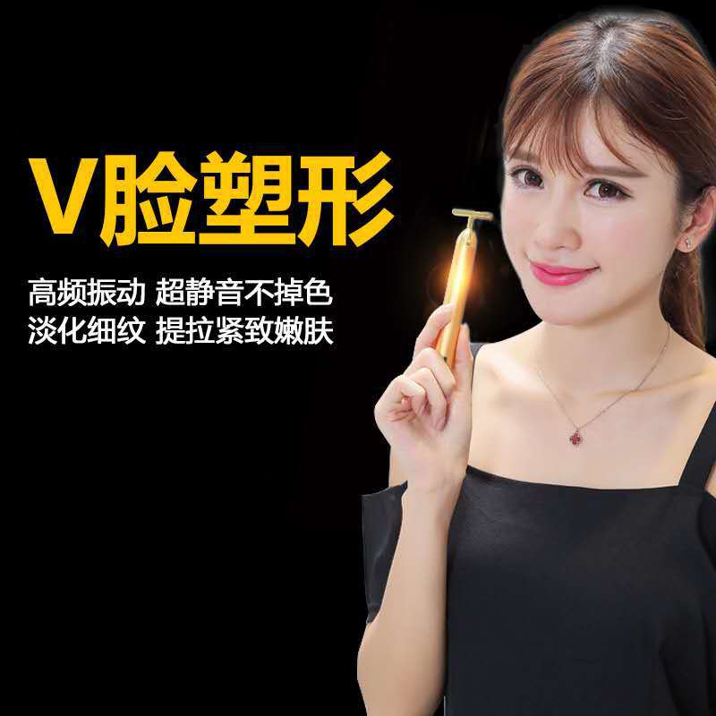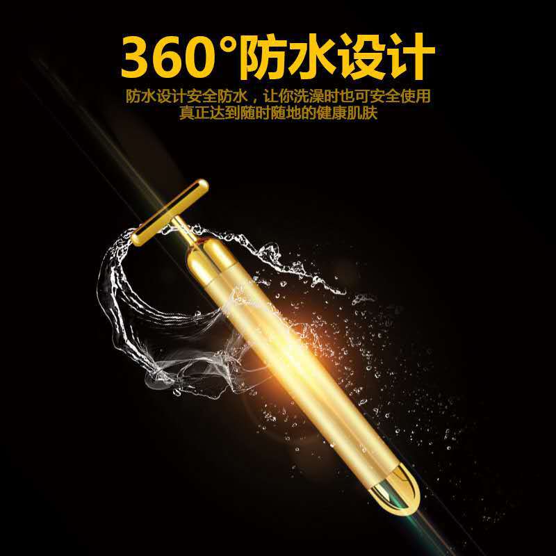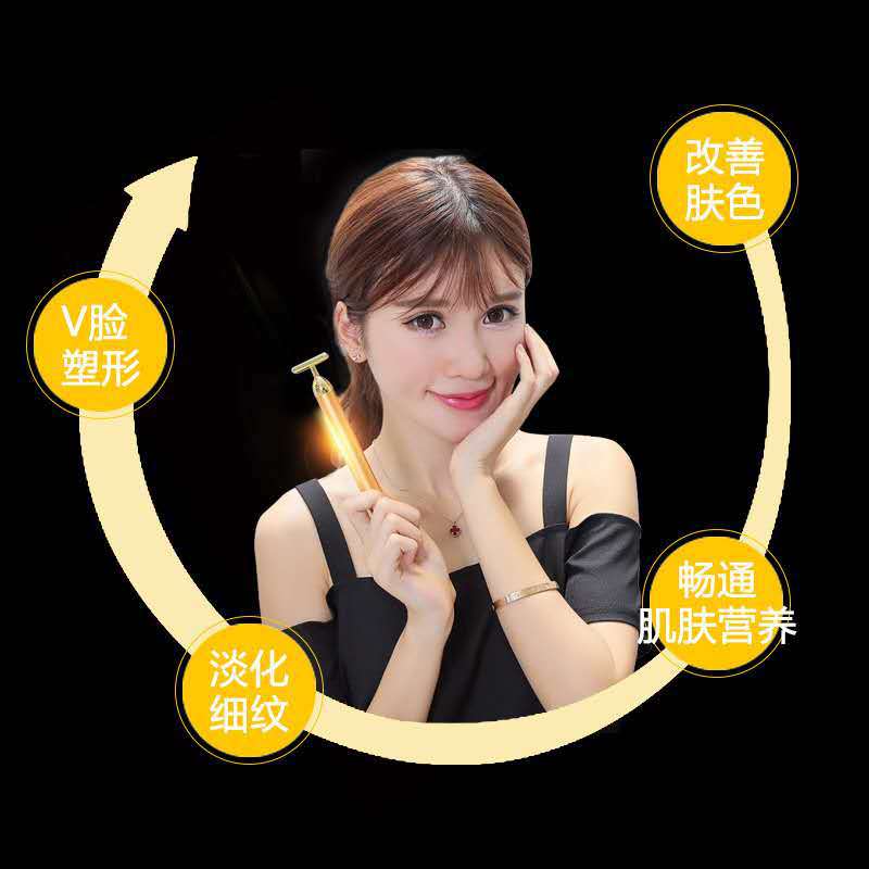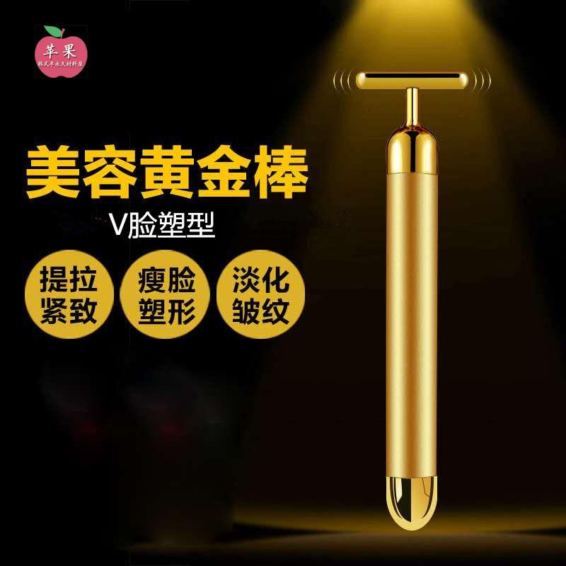 Masajeador facial en forma de T con varilla de belleza eléctrica de oro de 24 quilates semibordado, instrumento de belleza facial reafirmante y reafirmante.