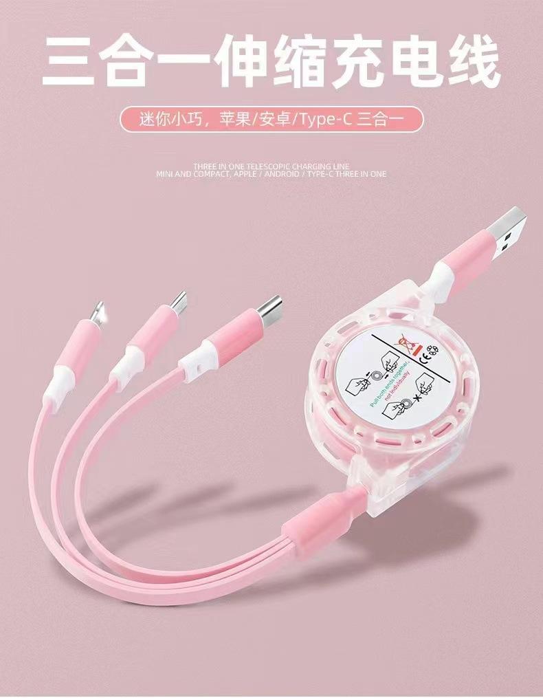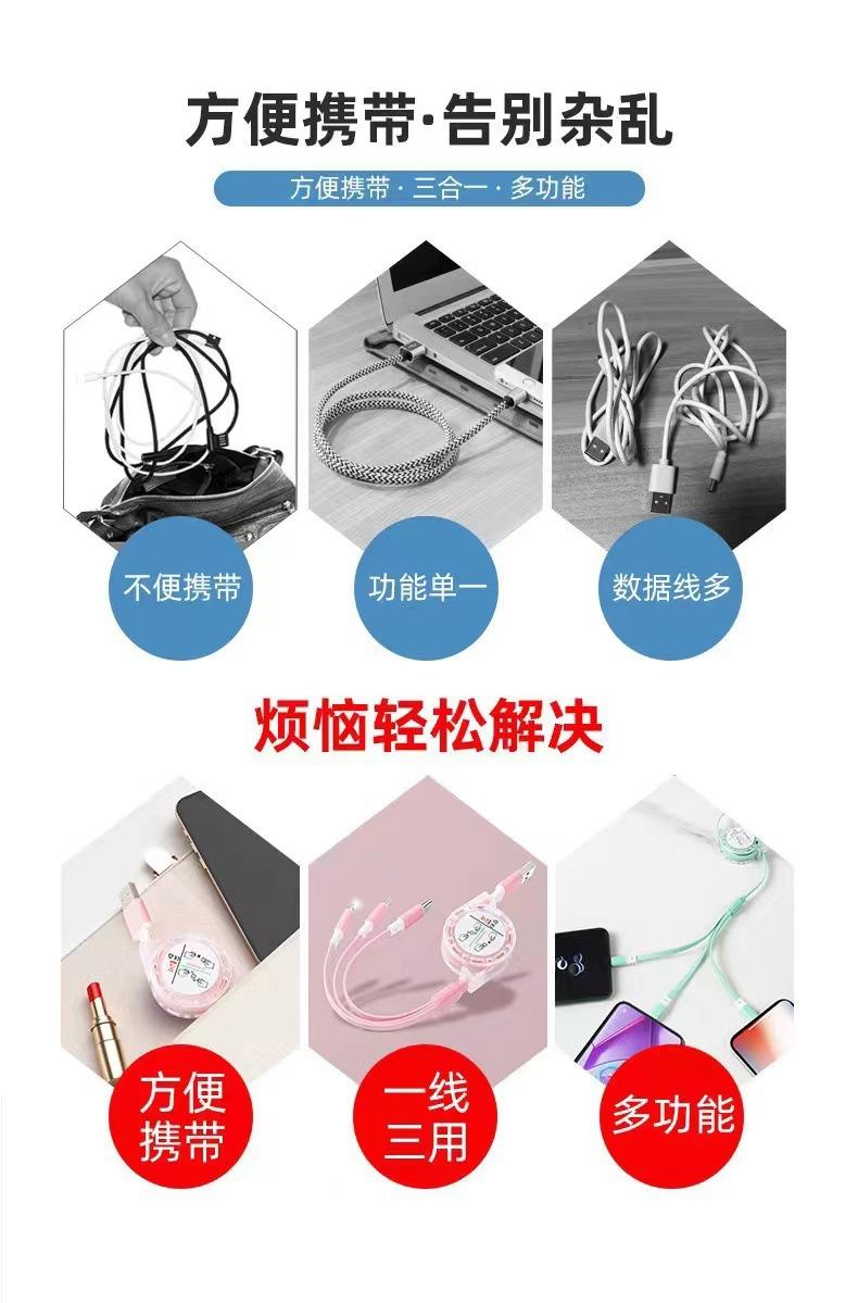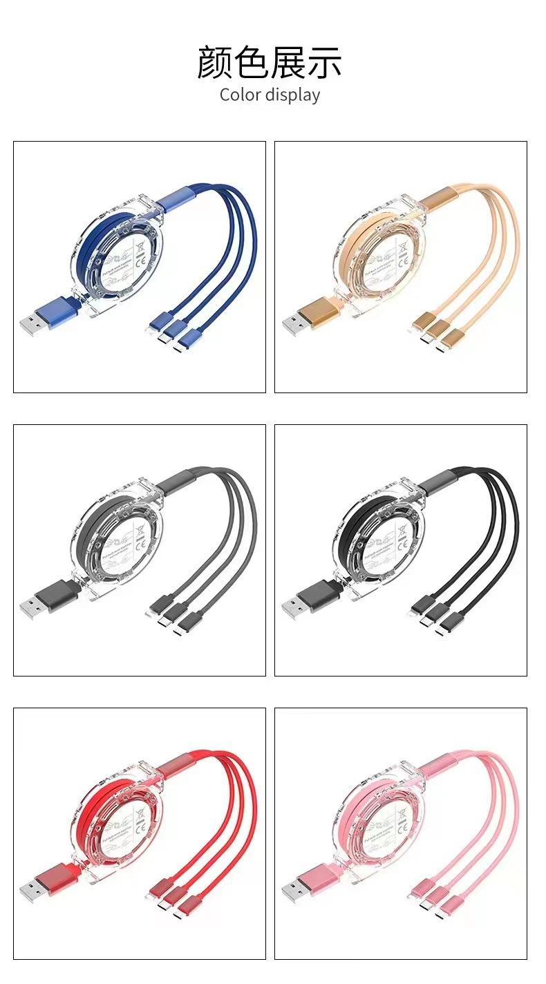 Cable de datos telescópico de uno a tres, cable de carga multicabezal, cargador universal para teléfono móvil, cable de carga rápida tres en uno