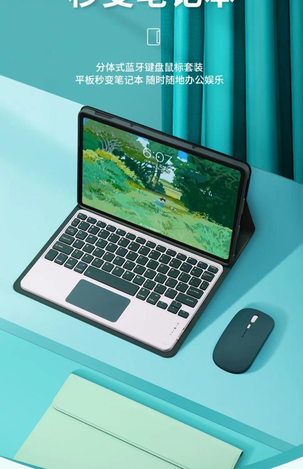 White touch keyboard & mist blue leather case & mist blue rechargeable mouse