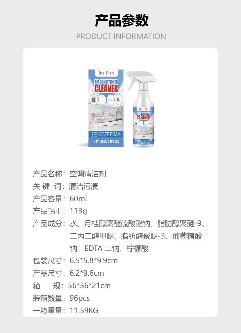 Limpiador de aire acondicionado Jue-Fish Aire acondicionado doméstico Colgado Sin desmontaje Sin limpieza Limpieza del aire acondicionado Desodorización y desincrustación Espuma
