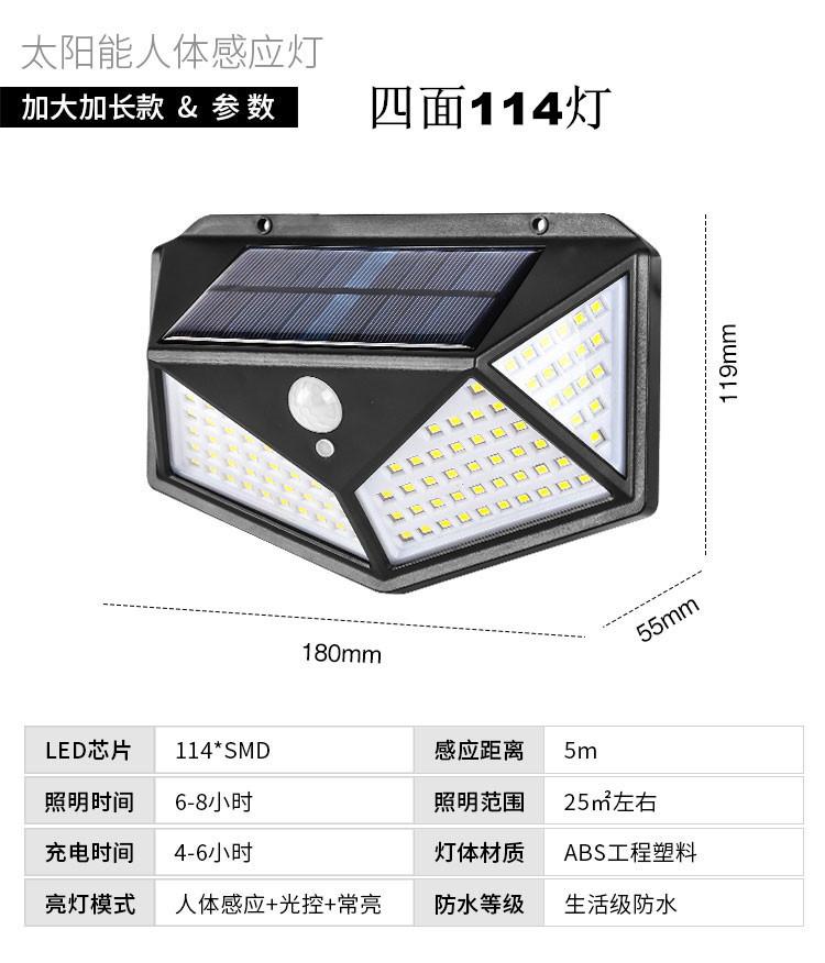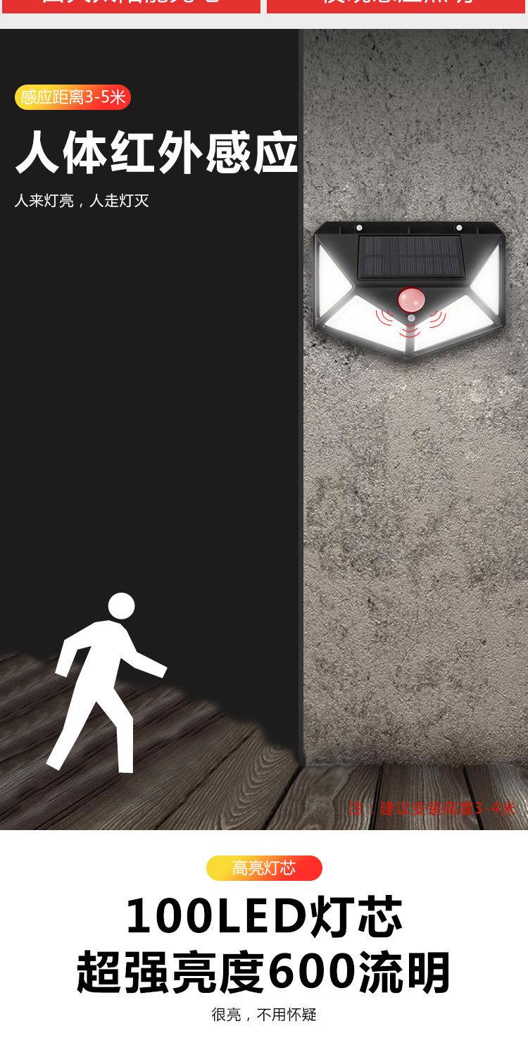 Lámpara de pared solar recargable transfronteriza, lámpara de inducción corporal humana de alto valor cromático, lámpara de jardín para exteriores