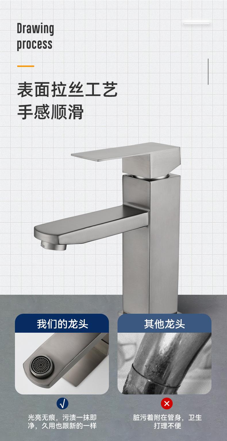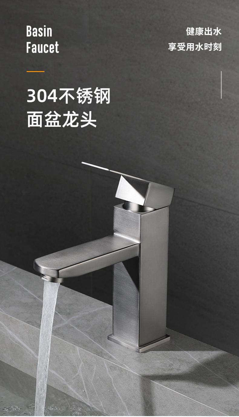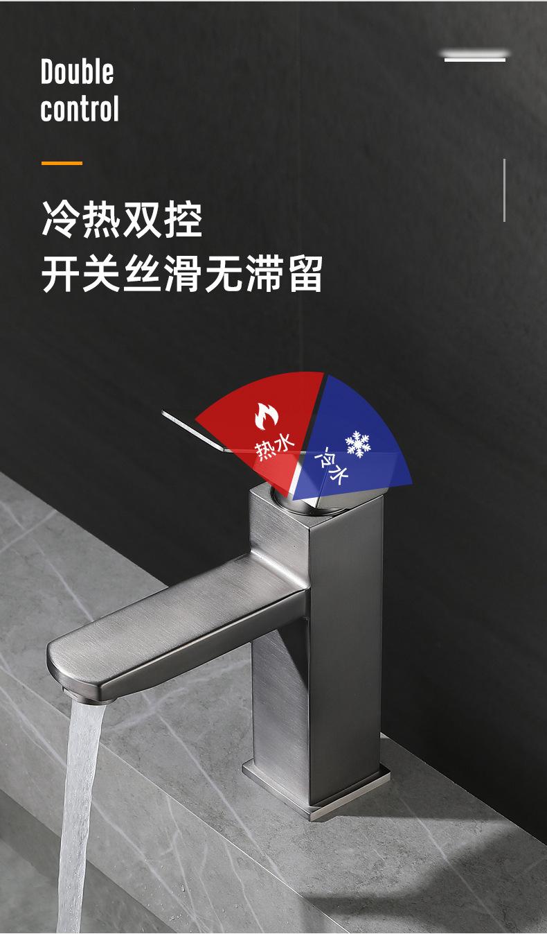 Lavabo cuadrado de acero inoxidable 304 grifo para agua fría y caliente grifo de baño monomando válvula mezcladora grifo para lavabo de manos