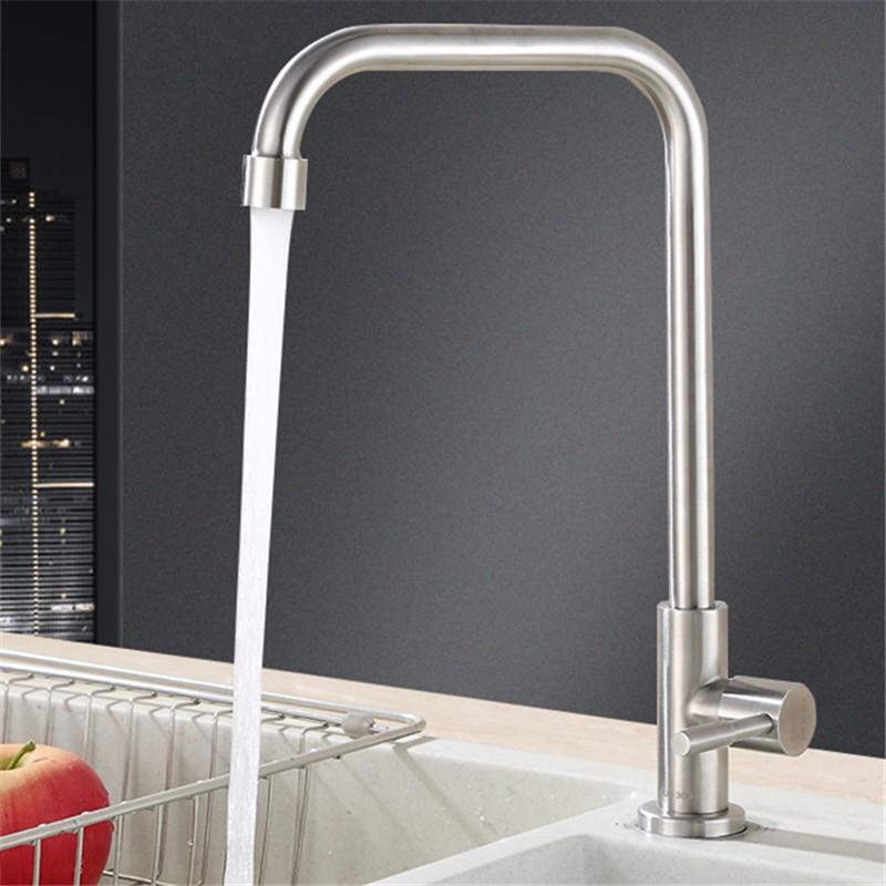 Grifo de cocina de un solo orificio con un solo orificio y un solo plato frío, grifo de cocina de acero inoxidable 304 con una sola boquilla de agua fría.