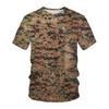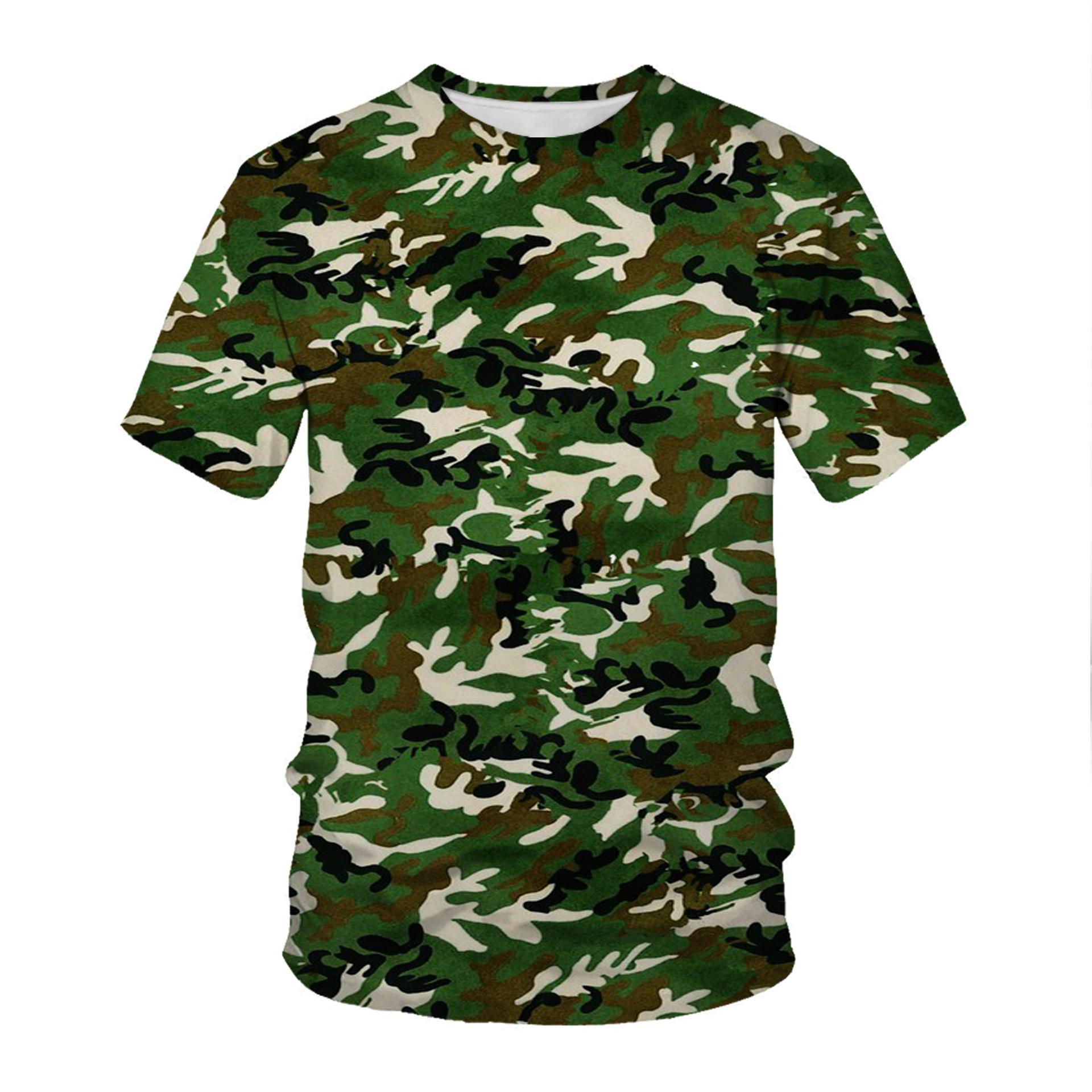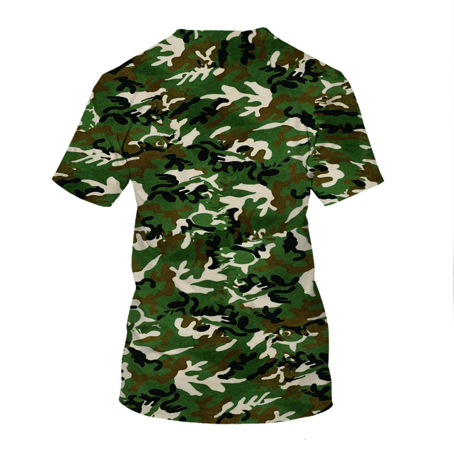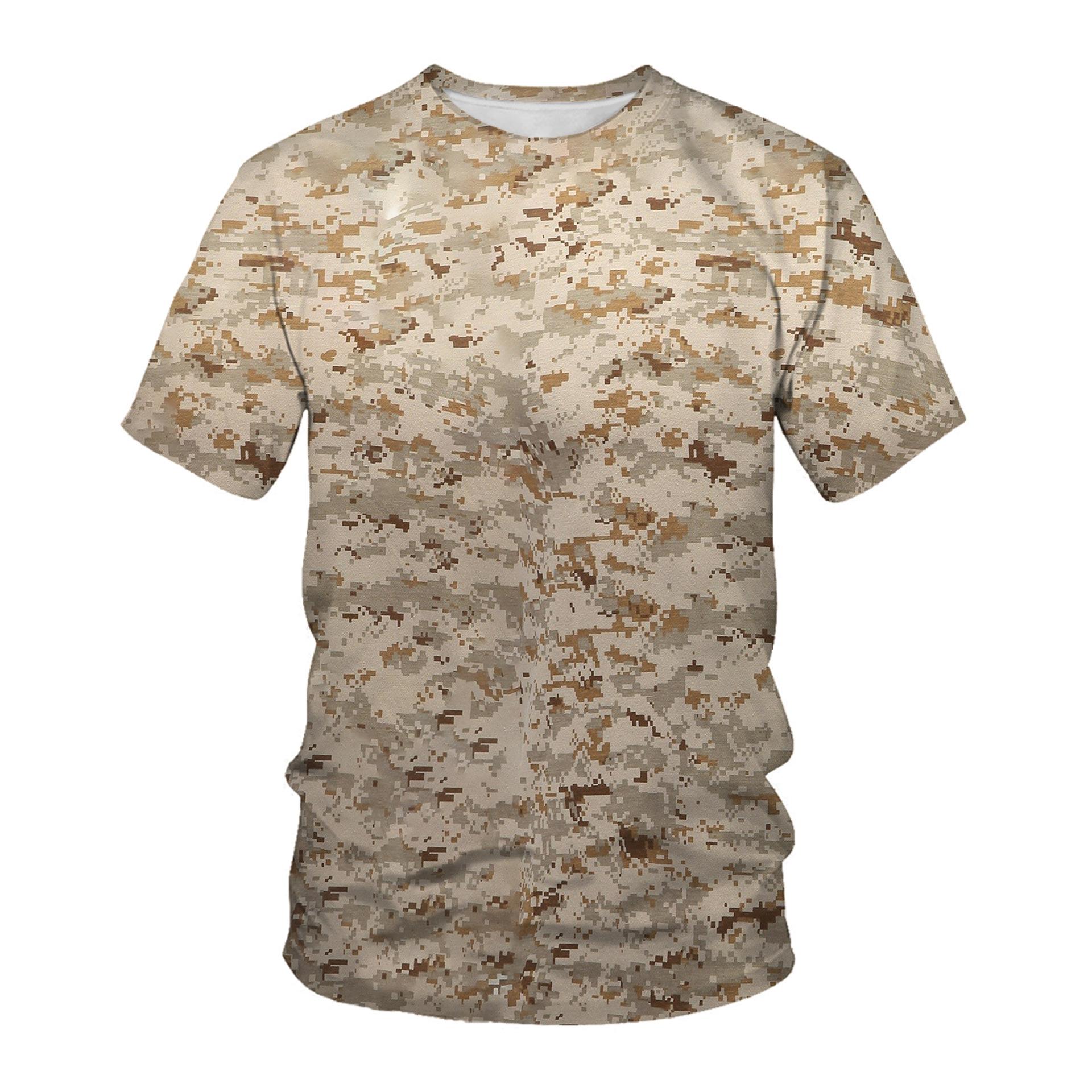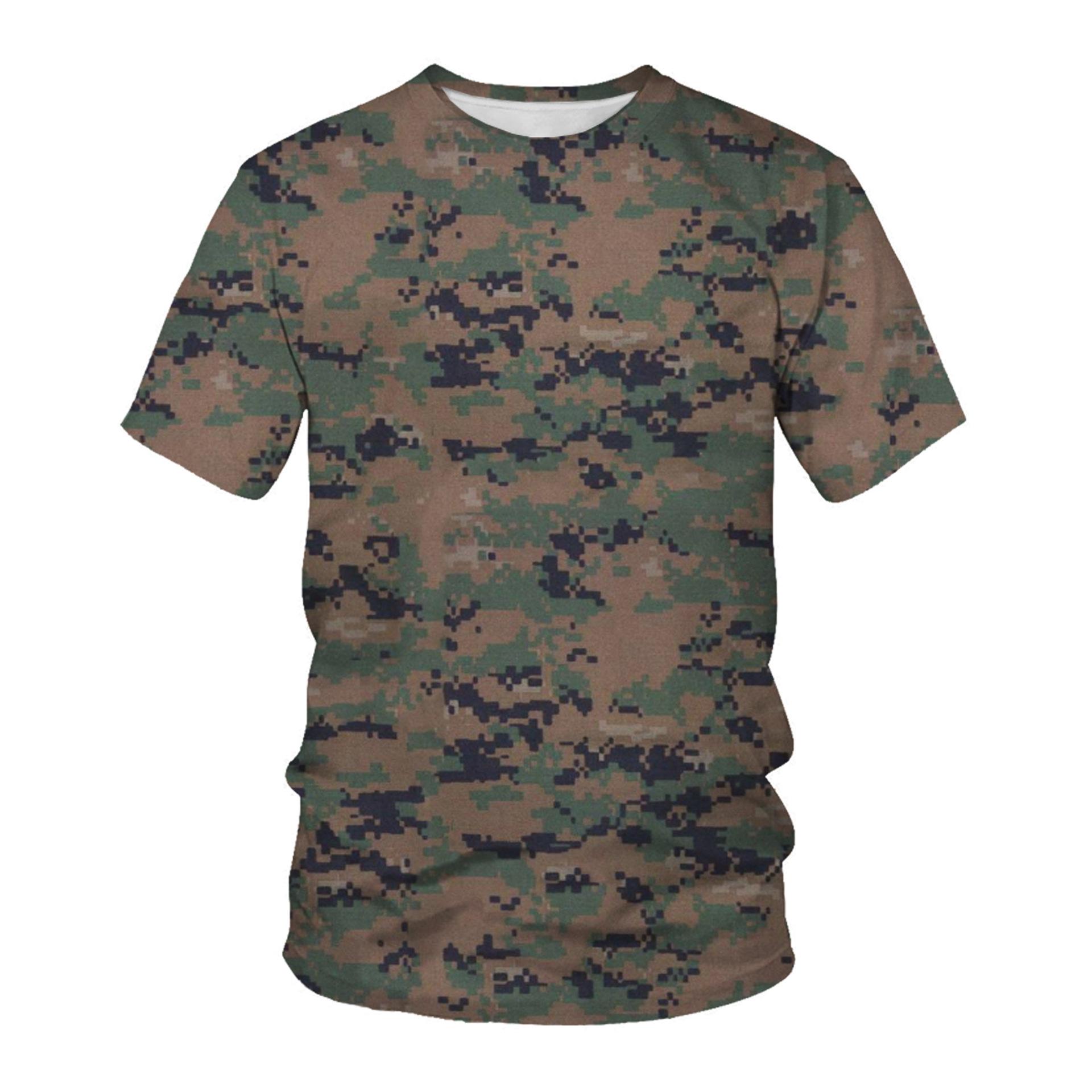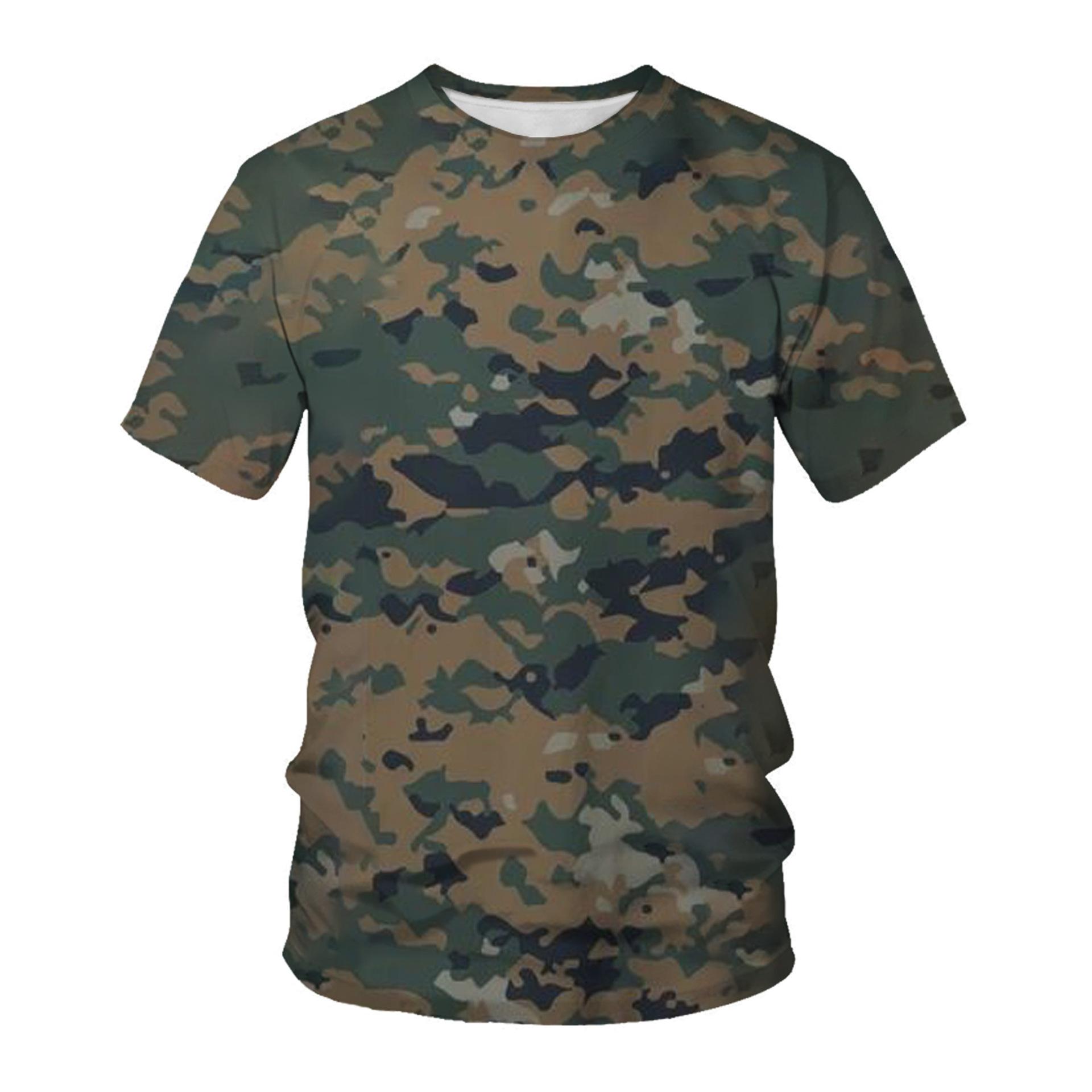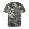 Camiseta de manga corta de verano para hombre, con estampado digital 3D de camuflaje, cuello redondo, holgada, de media manga