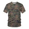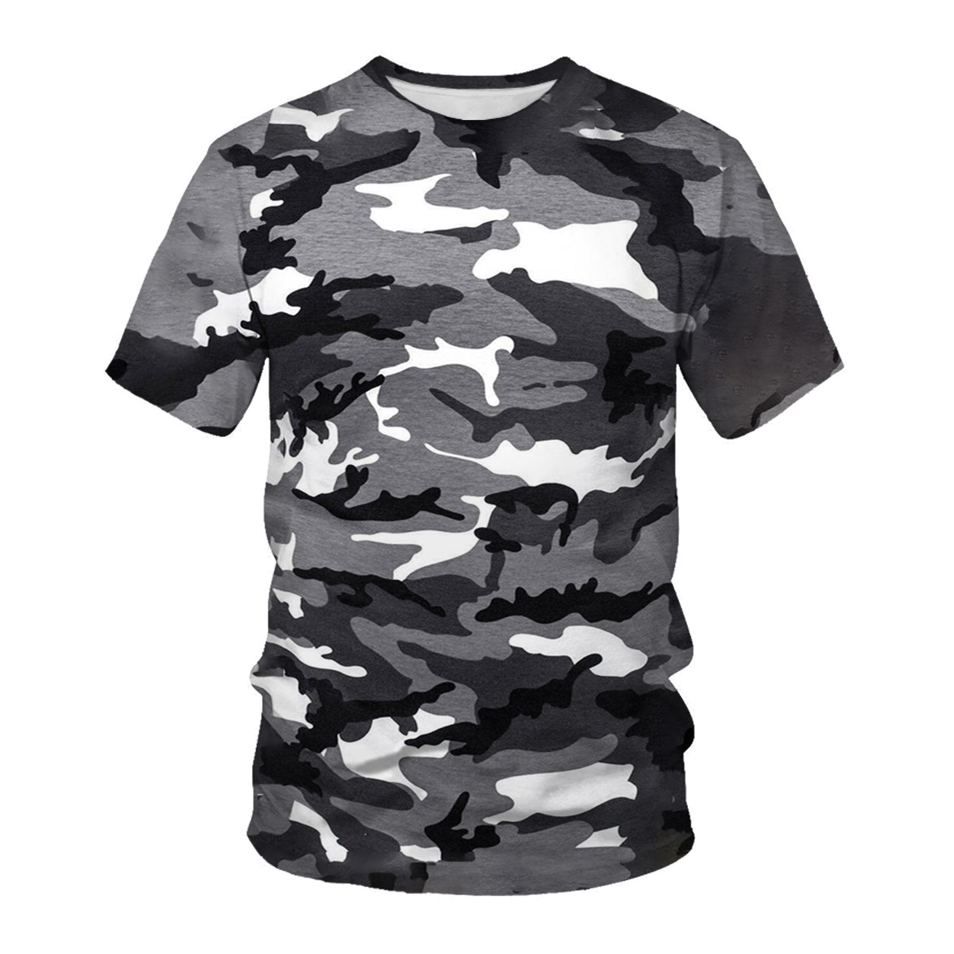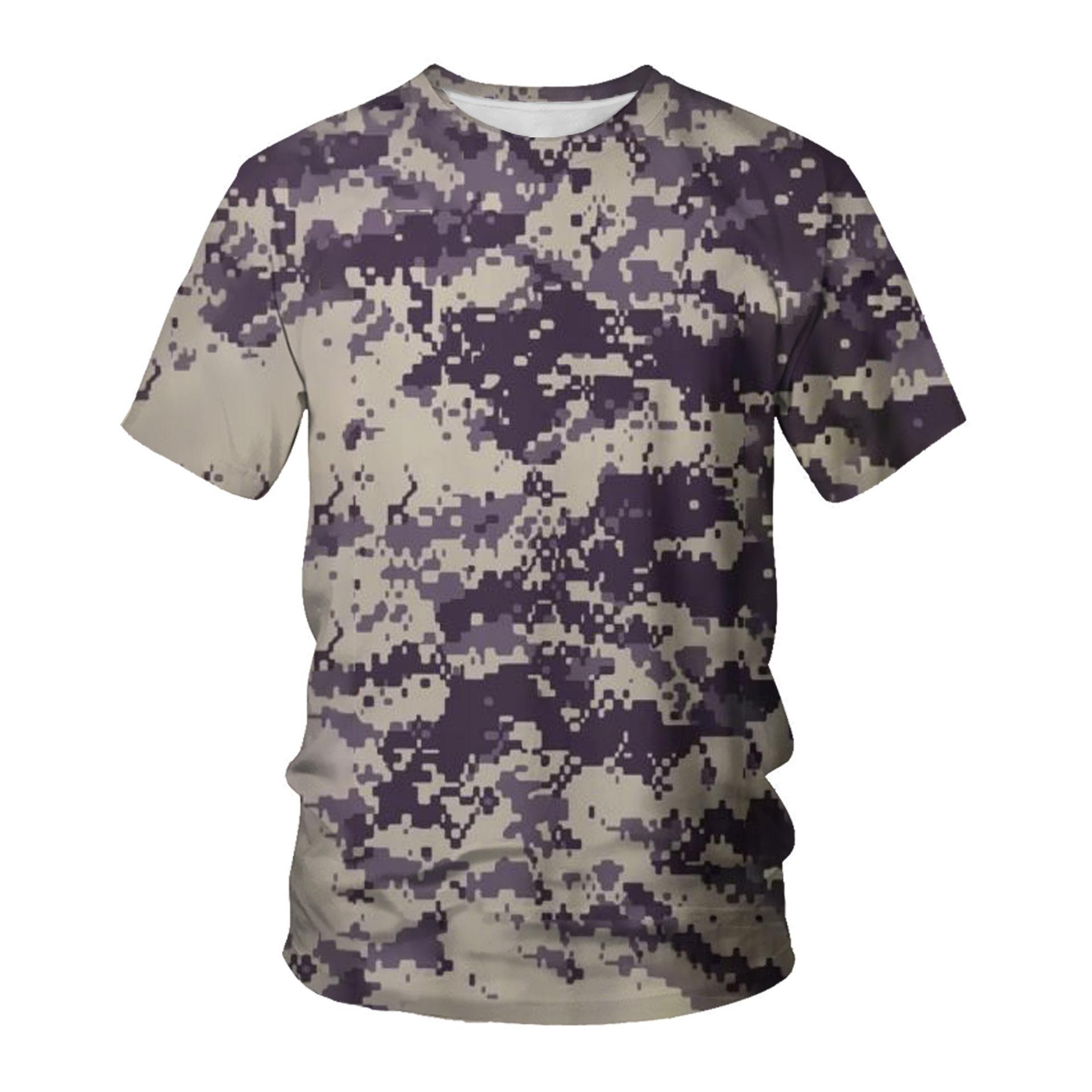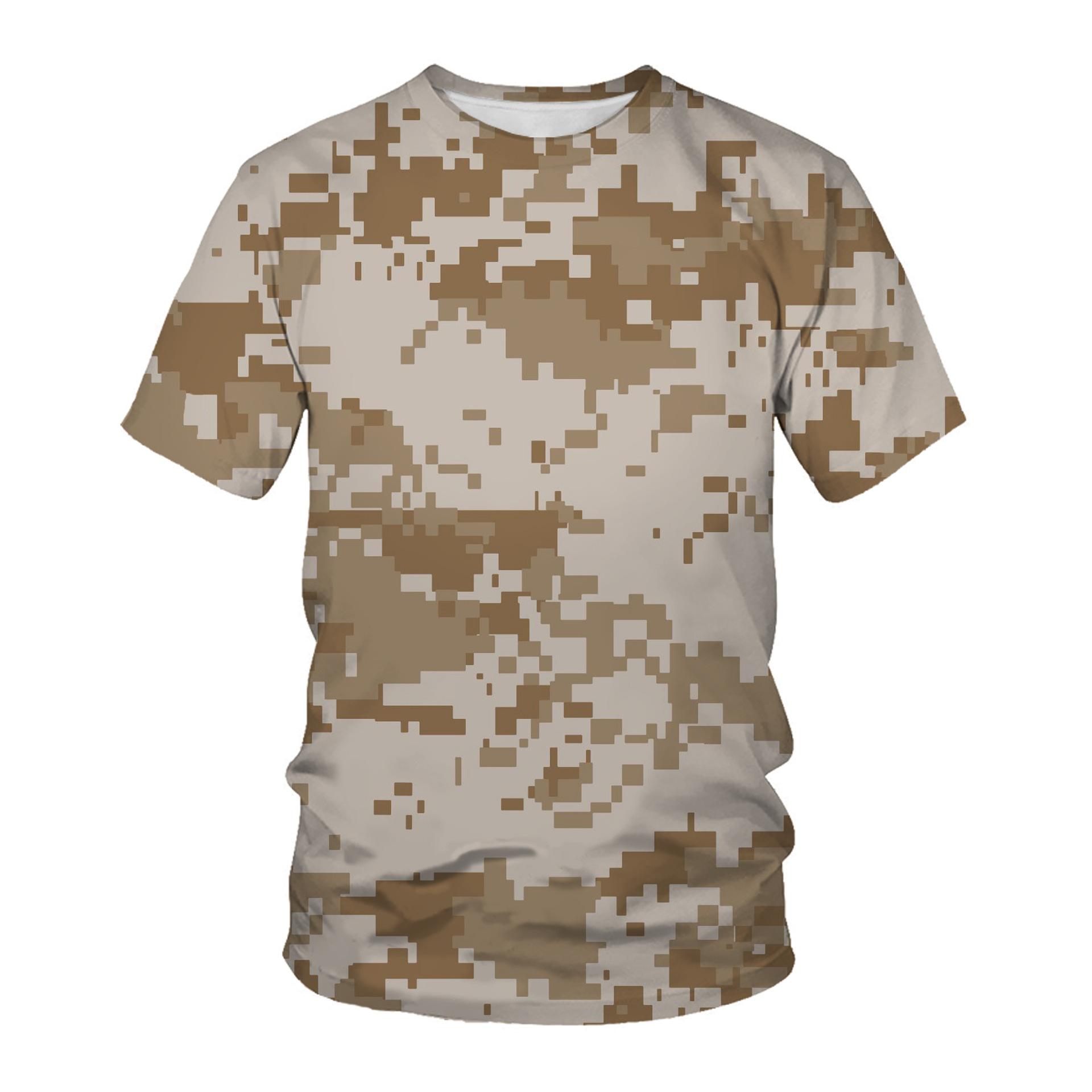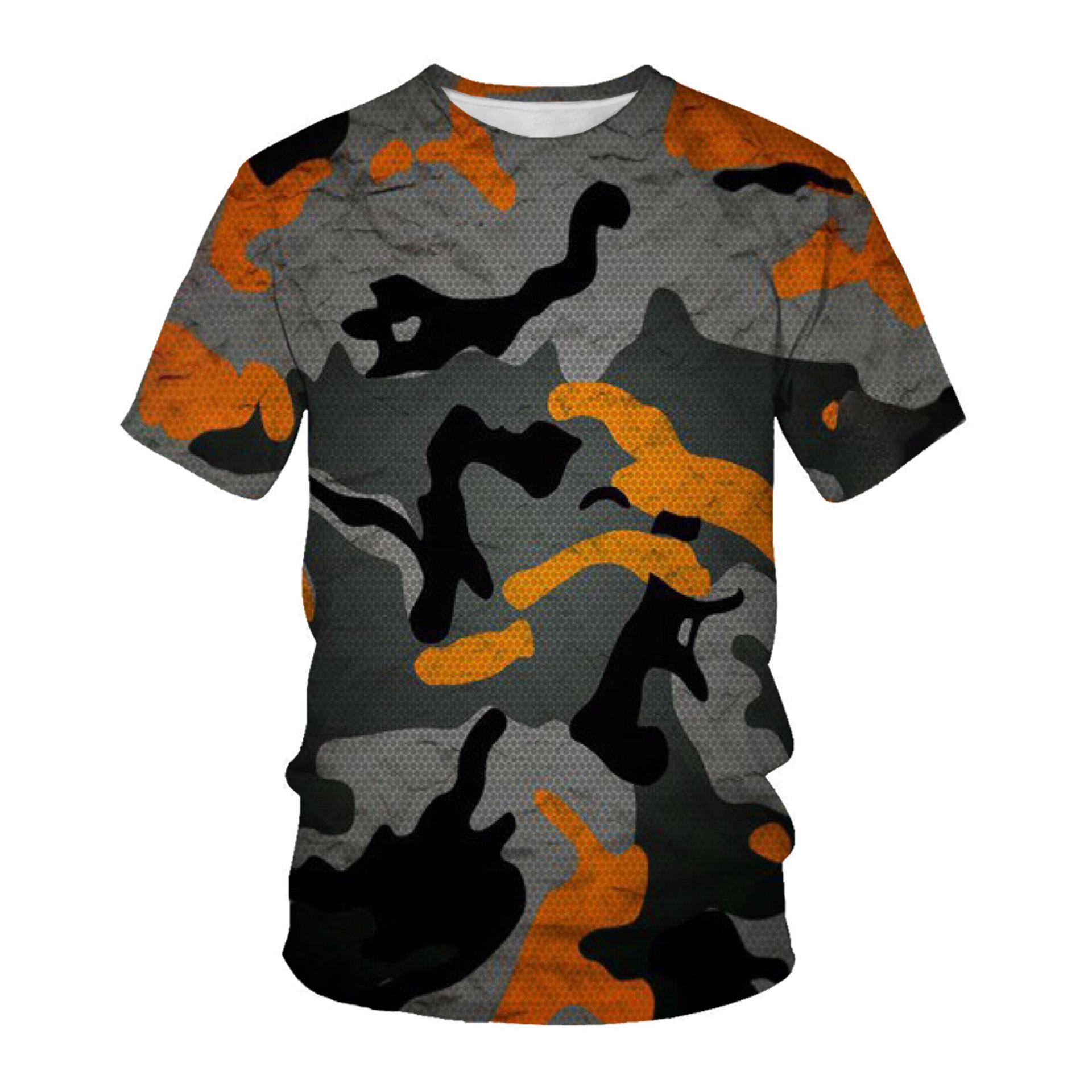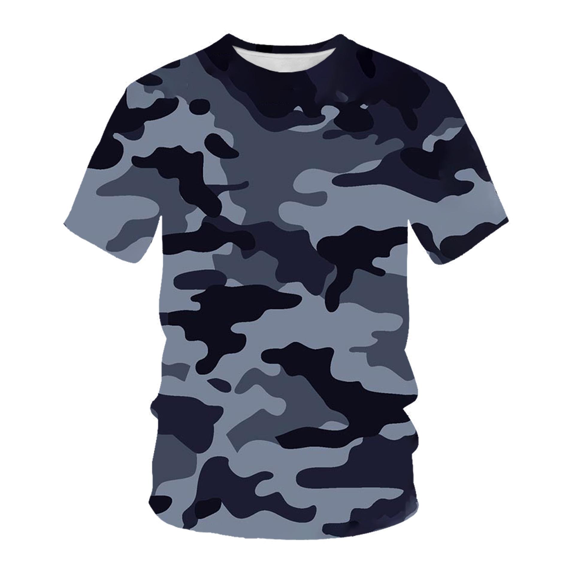 Camiseta de manga corta de verano para hombre, con estampado digital 3D de camuflaje, cuello redondo, holgada, de media manga
