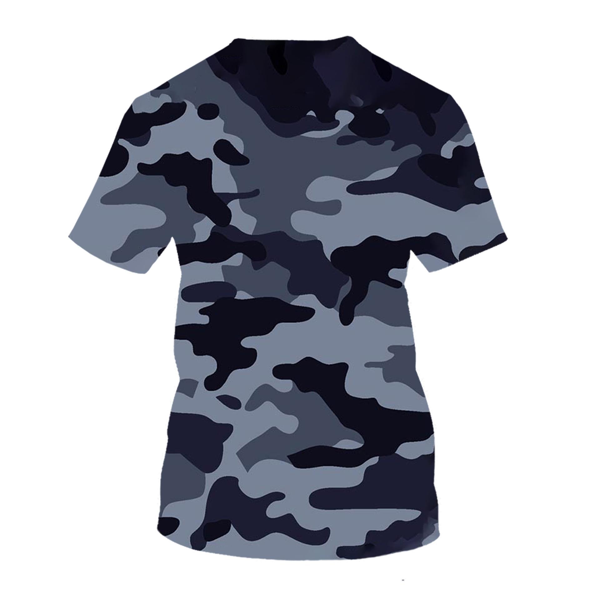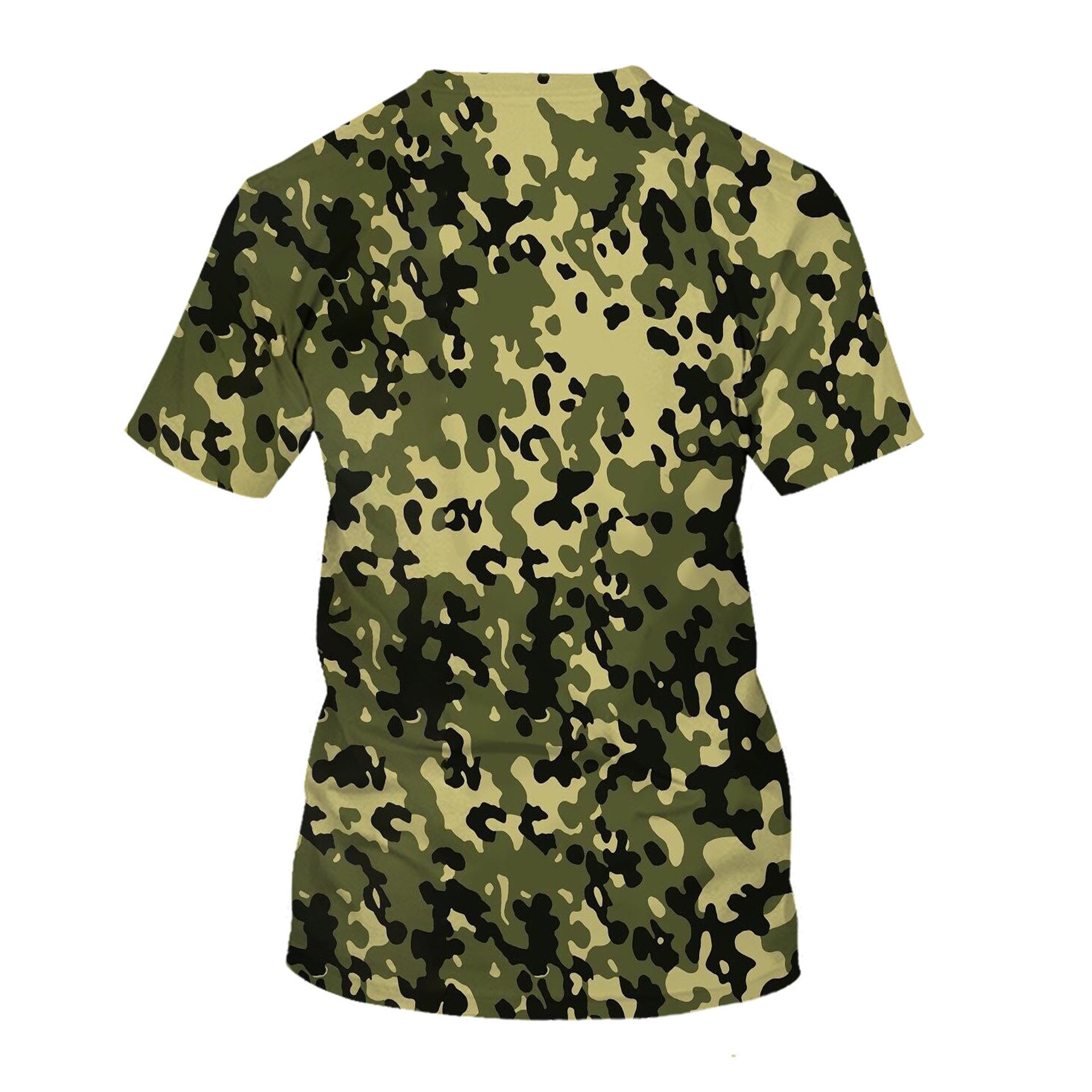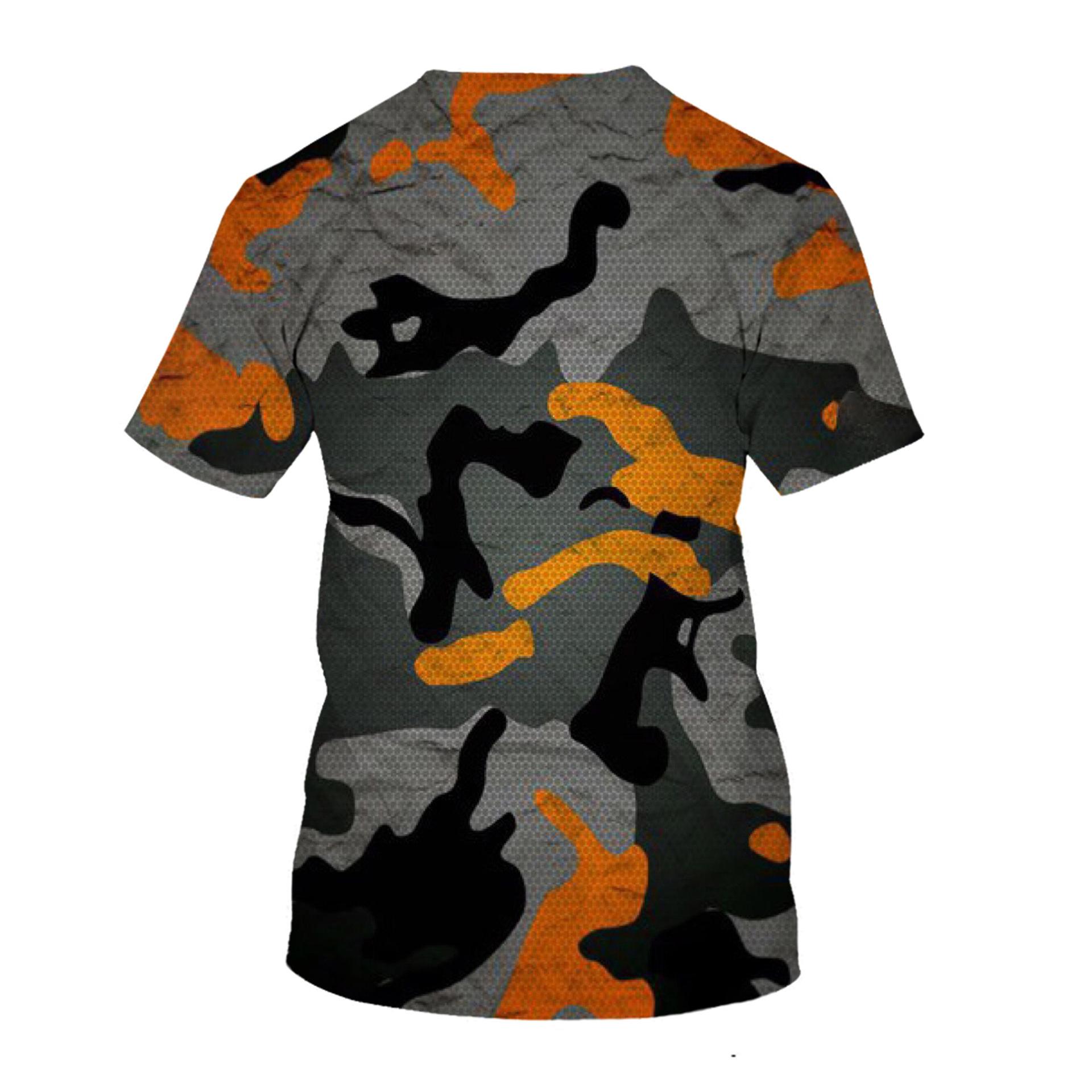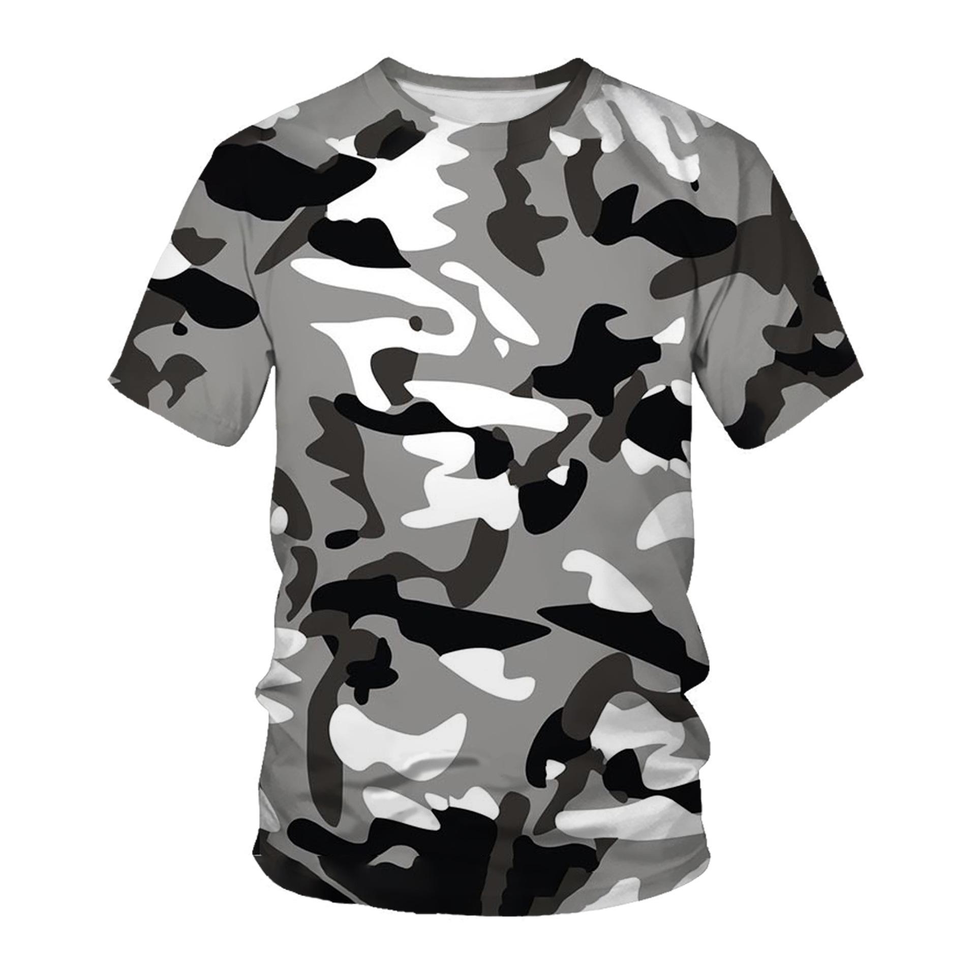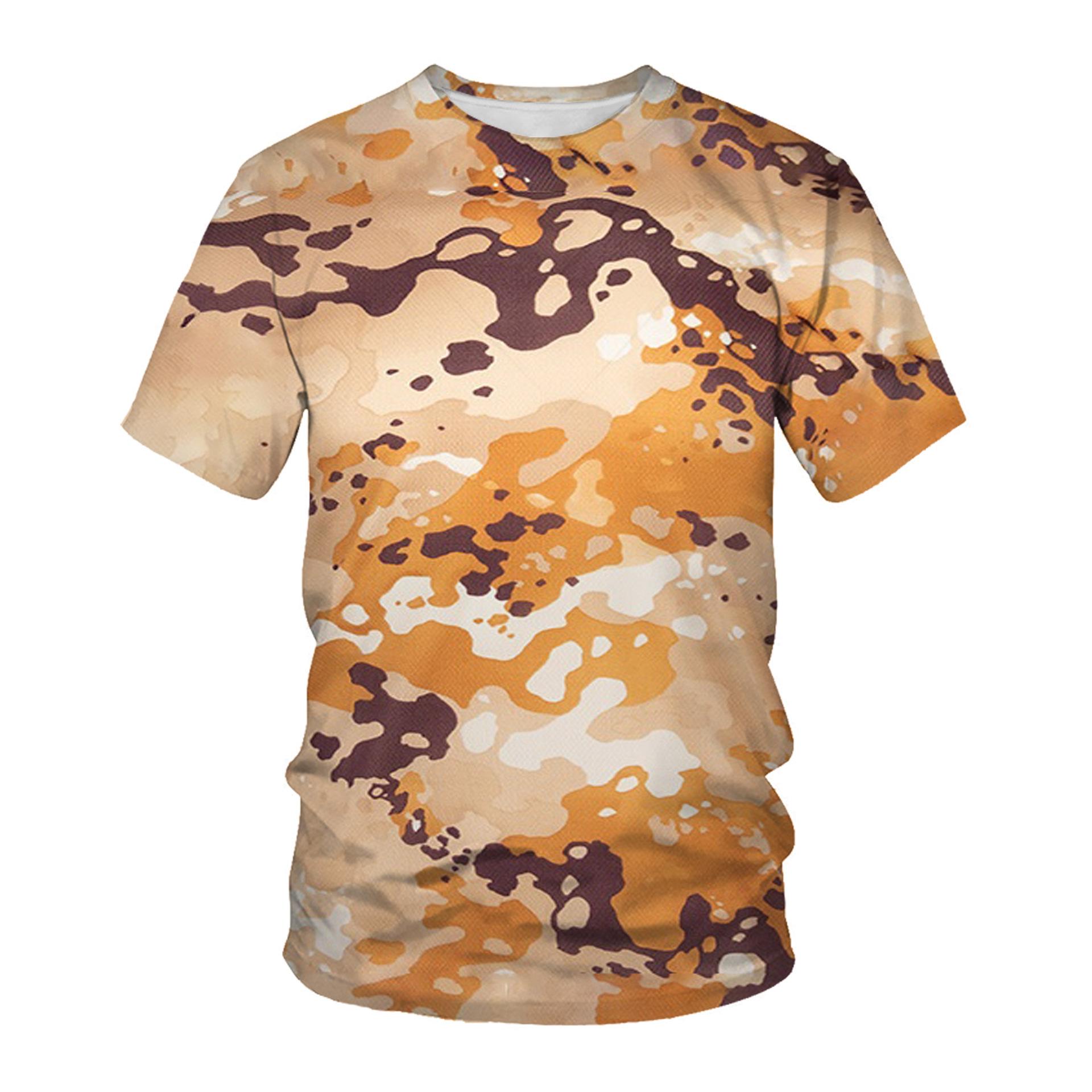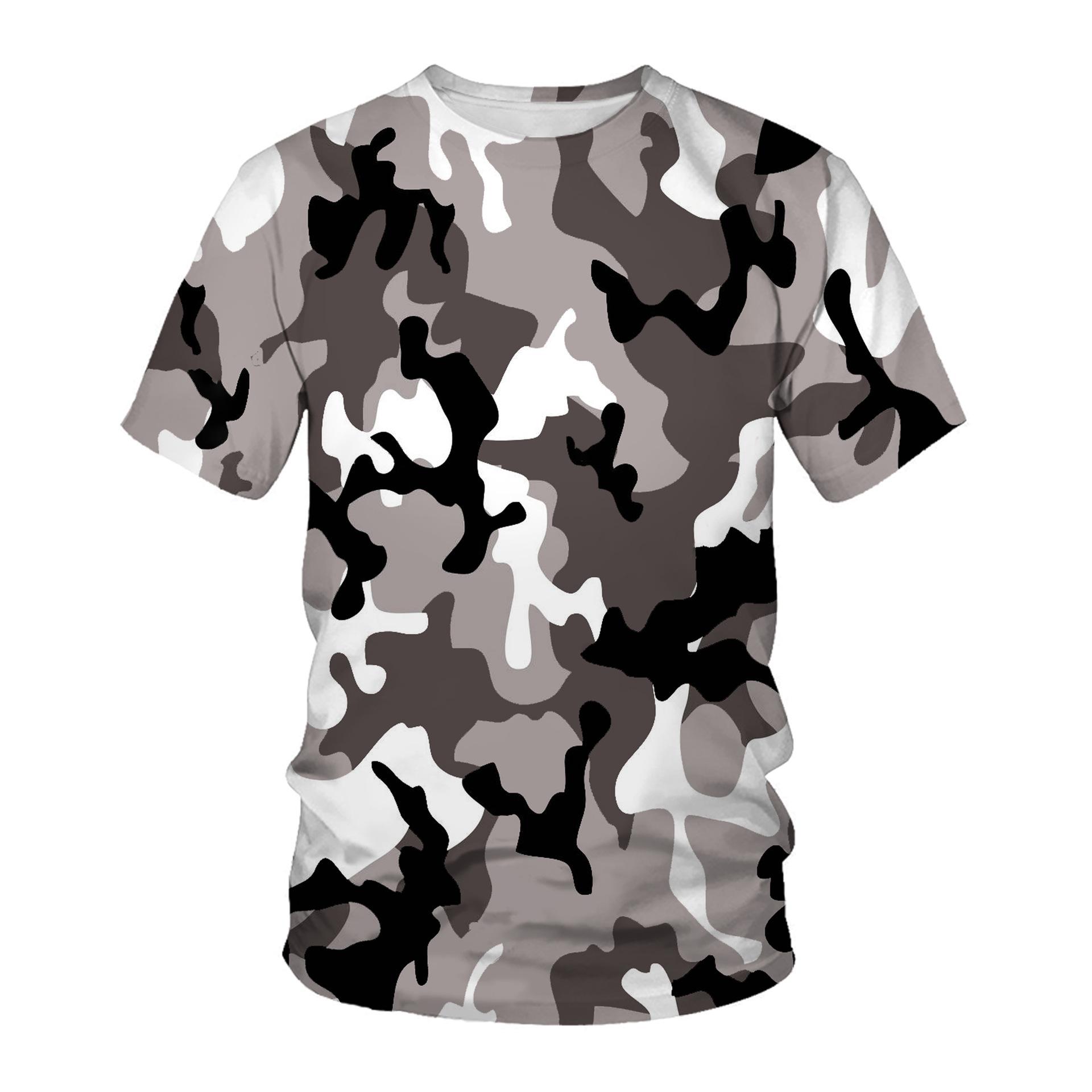Camiseta de manga corta de verano para hombre, con estampado digital 3D de camuflaje, cuello redondo, holgada, de media manga